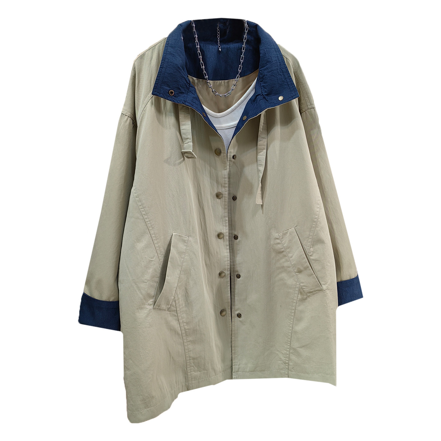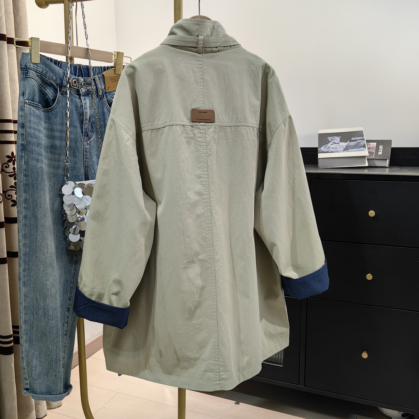 韩系撞色立领中长款风衣女2026新款宽松休闲工装风外套春秋大衣潮