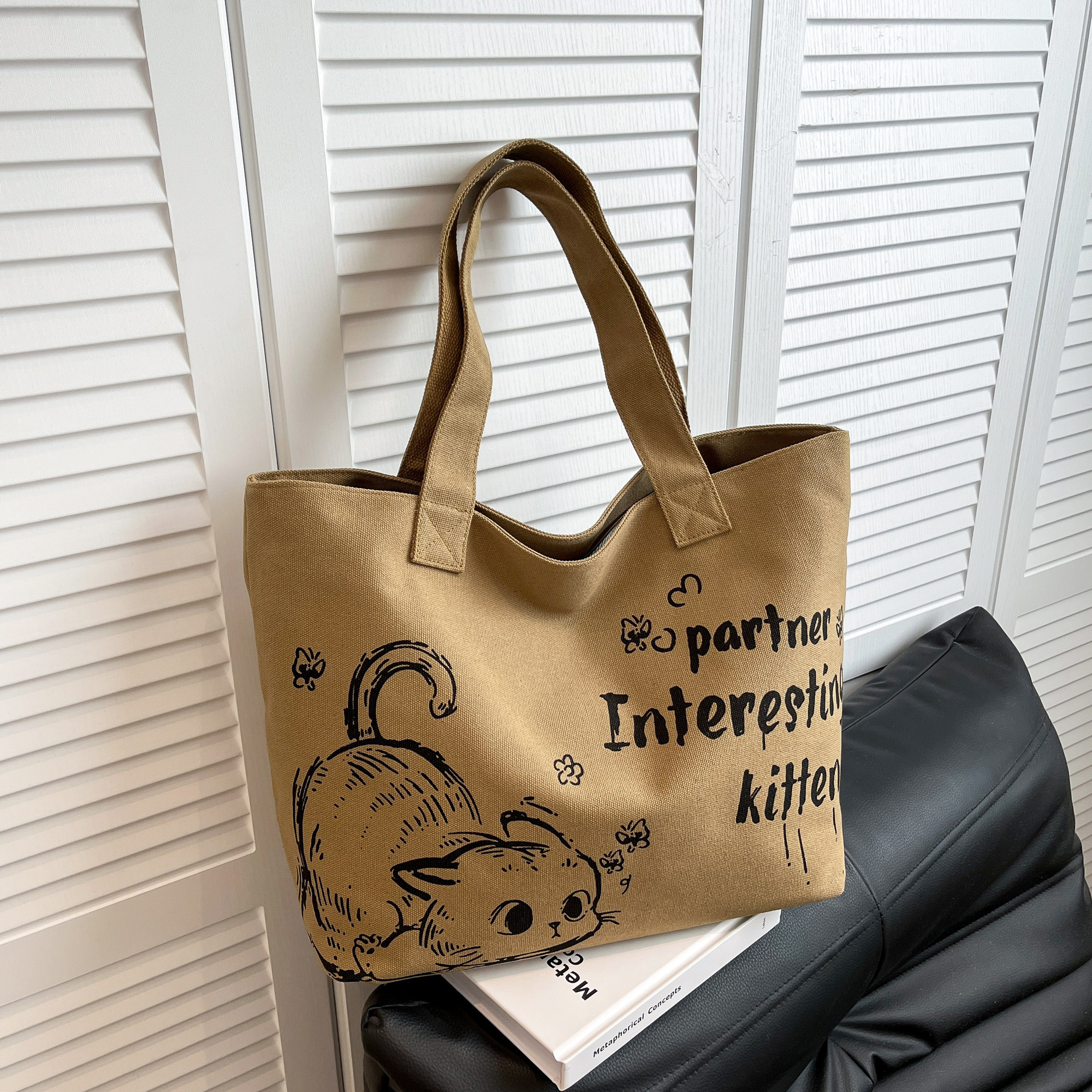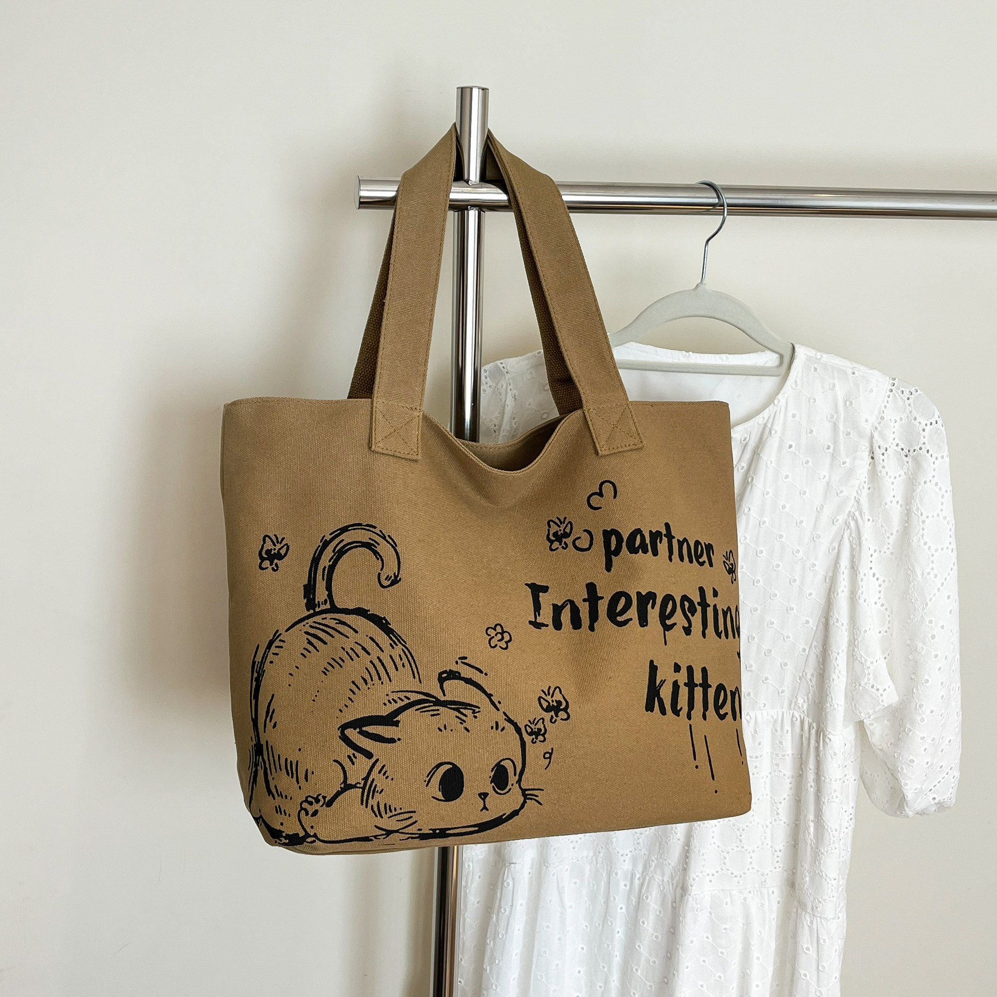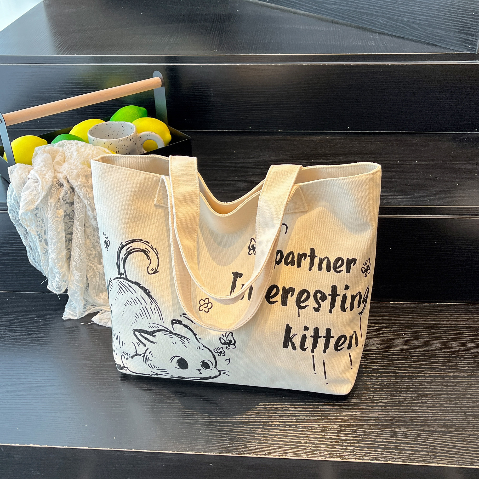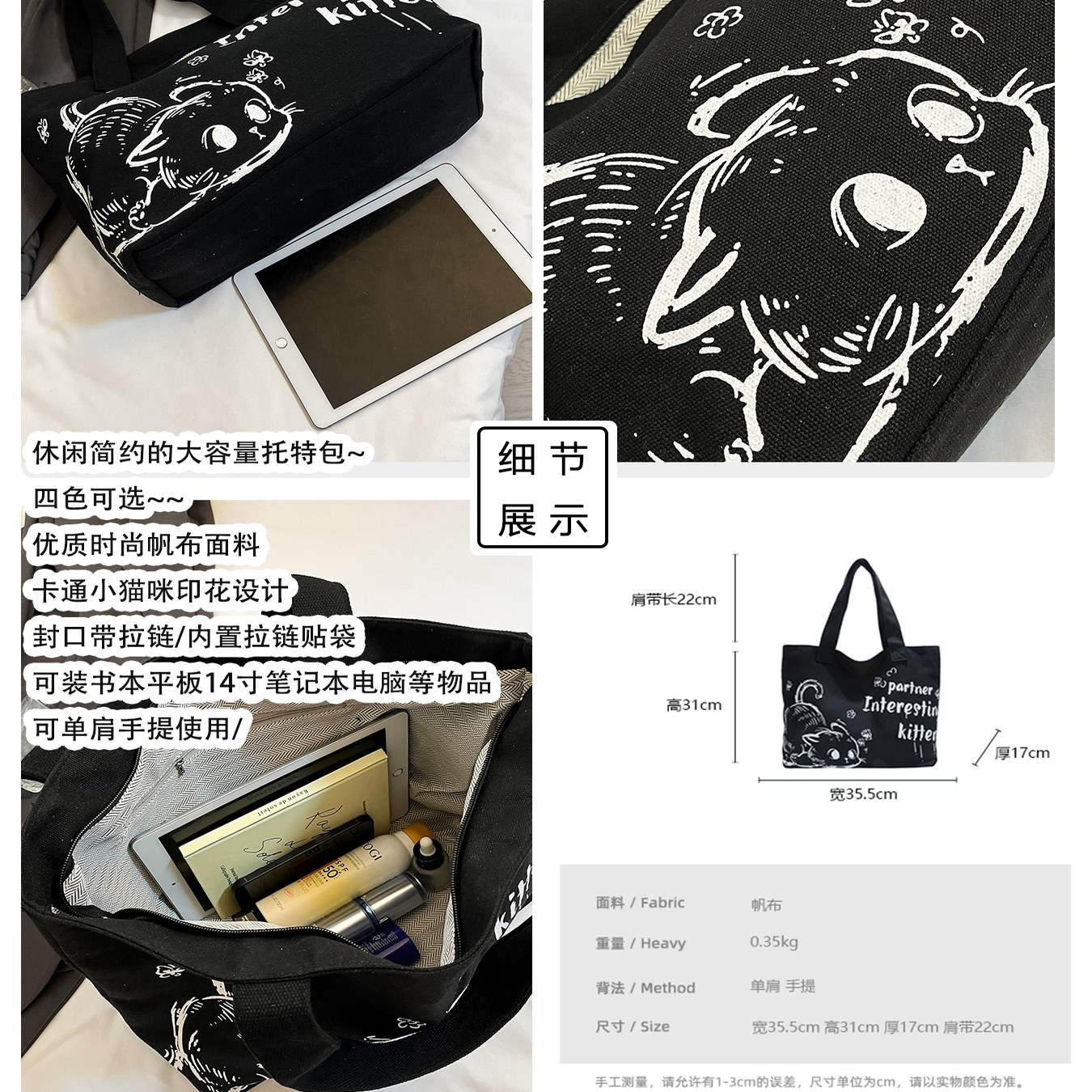 大容量帆布包托特包包女通勤外出带拉链手提购物袋卡通可爱单肩包