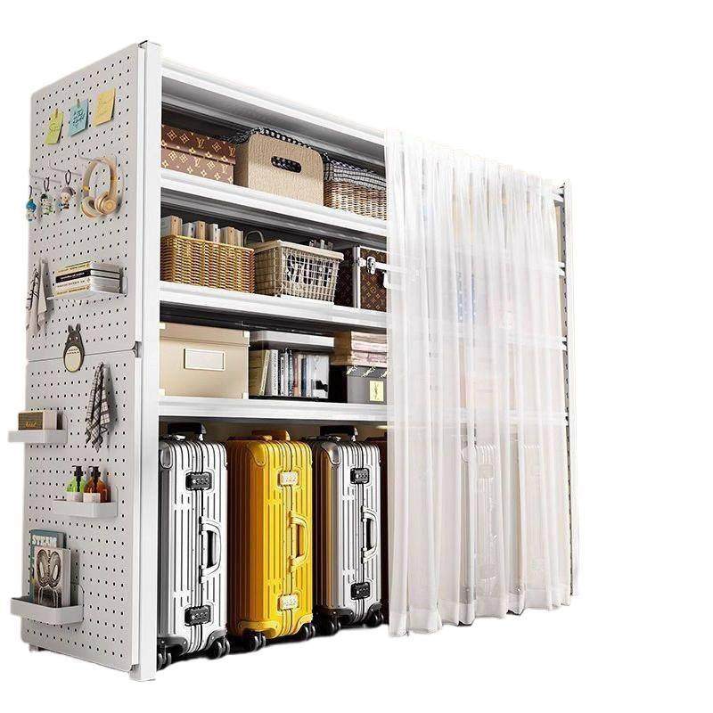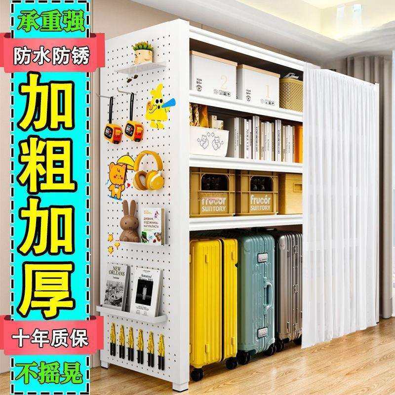 洞洞板储物铁架子防尘帘多层置物架货架行李箱落地客厅收纳架