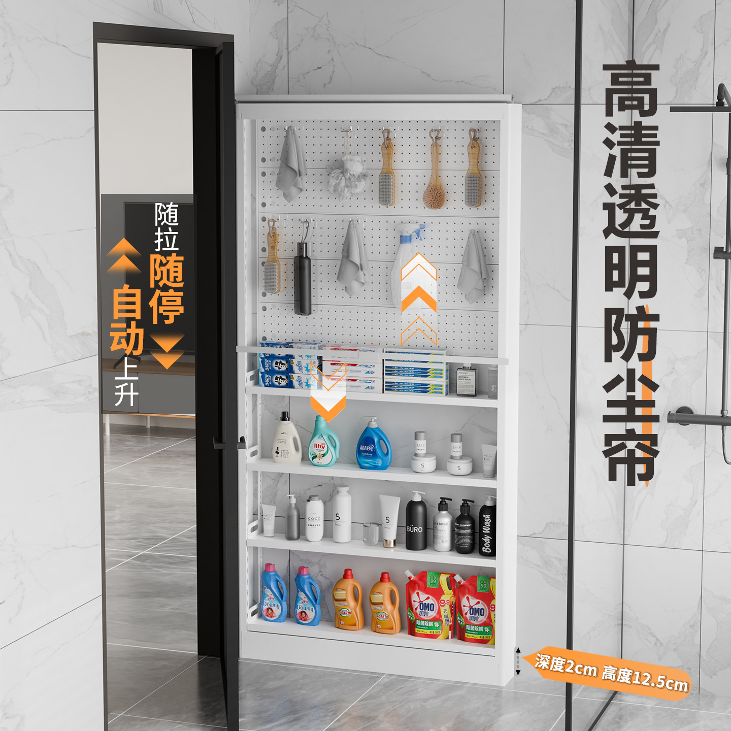 超薄15CM金属防尘帘置物架书架洞洞板门后收纳架落地一体极窄靠墙