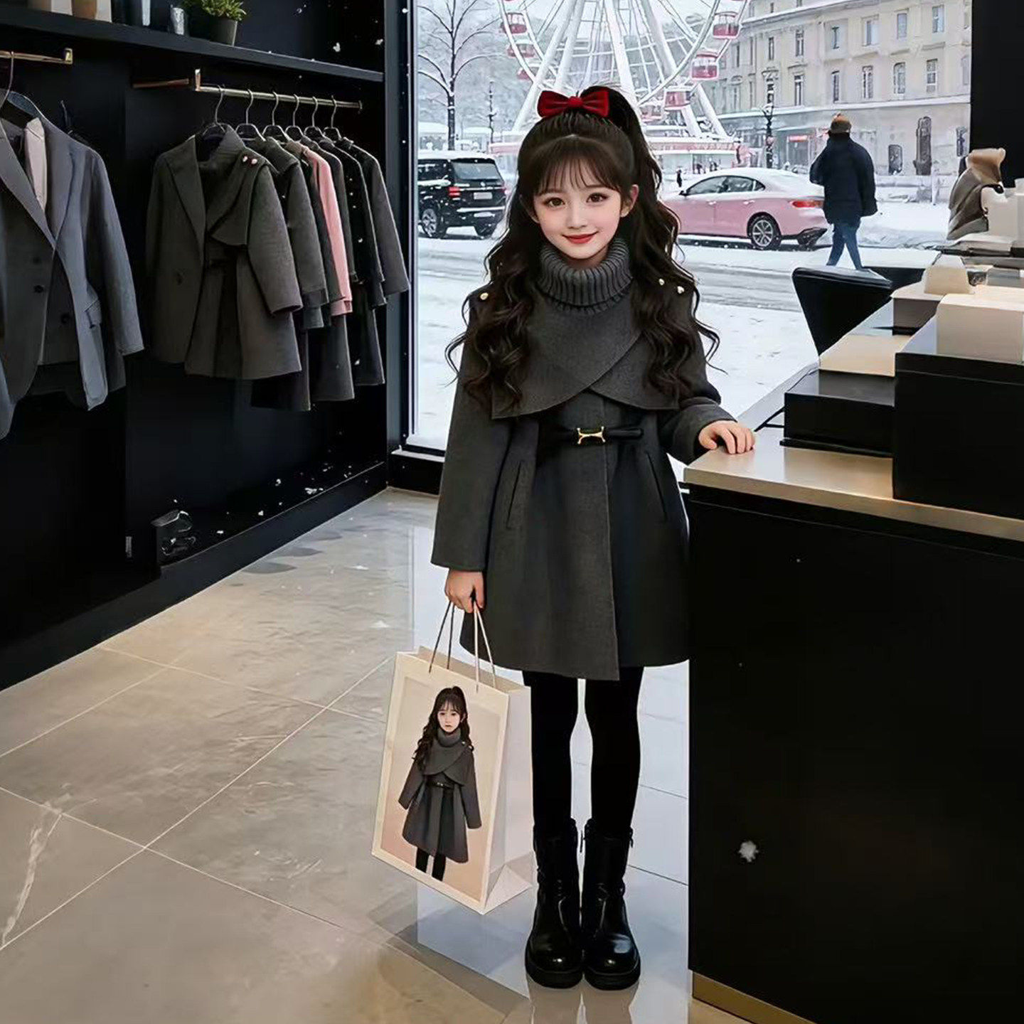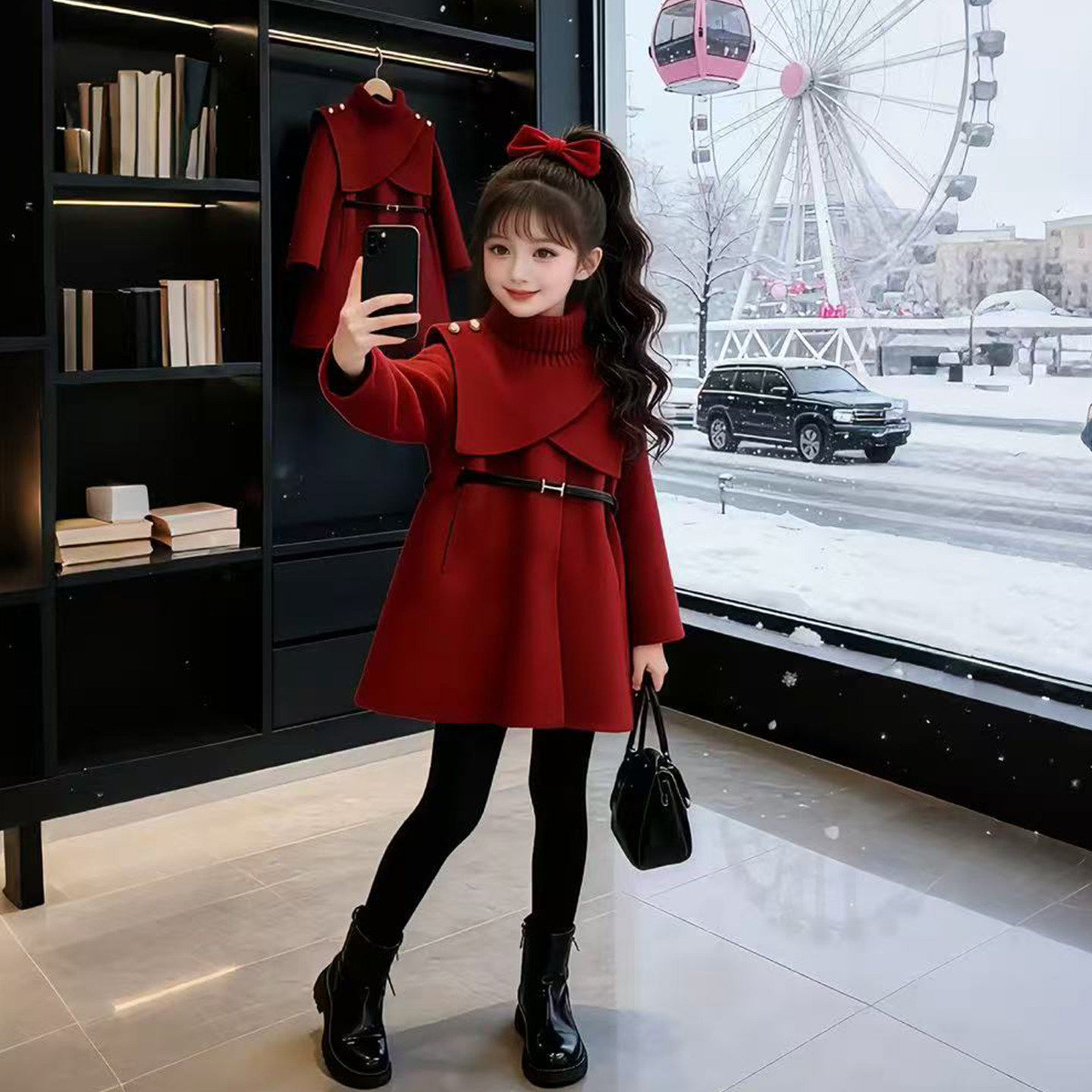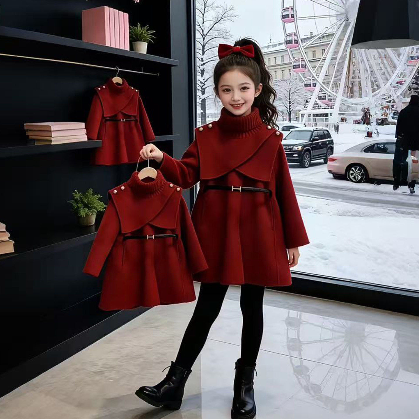 女童冬季加厚毛呢外套2026新款儿童中长款可拆卸斗篷保暖呢子大衣