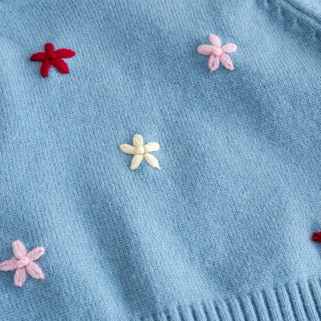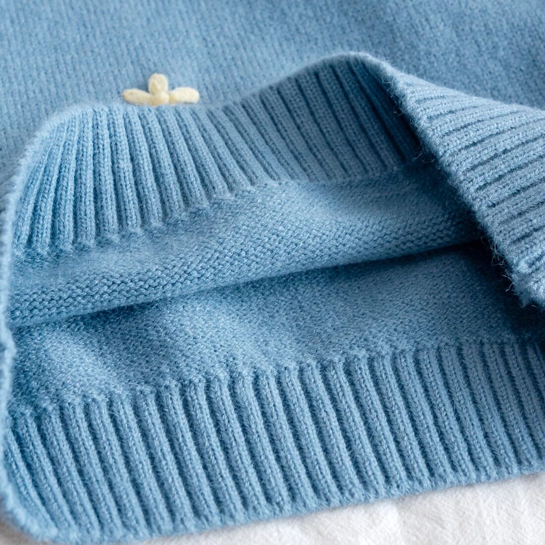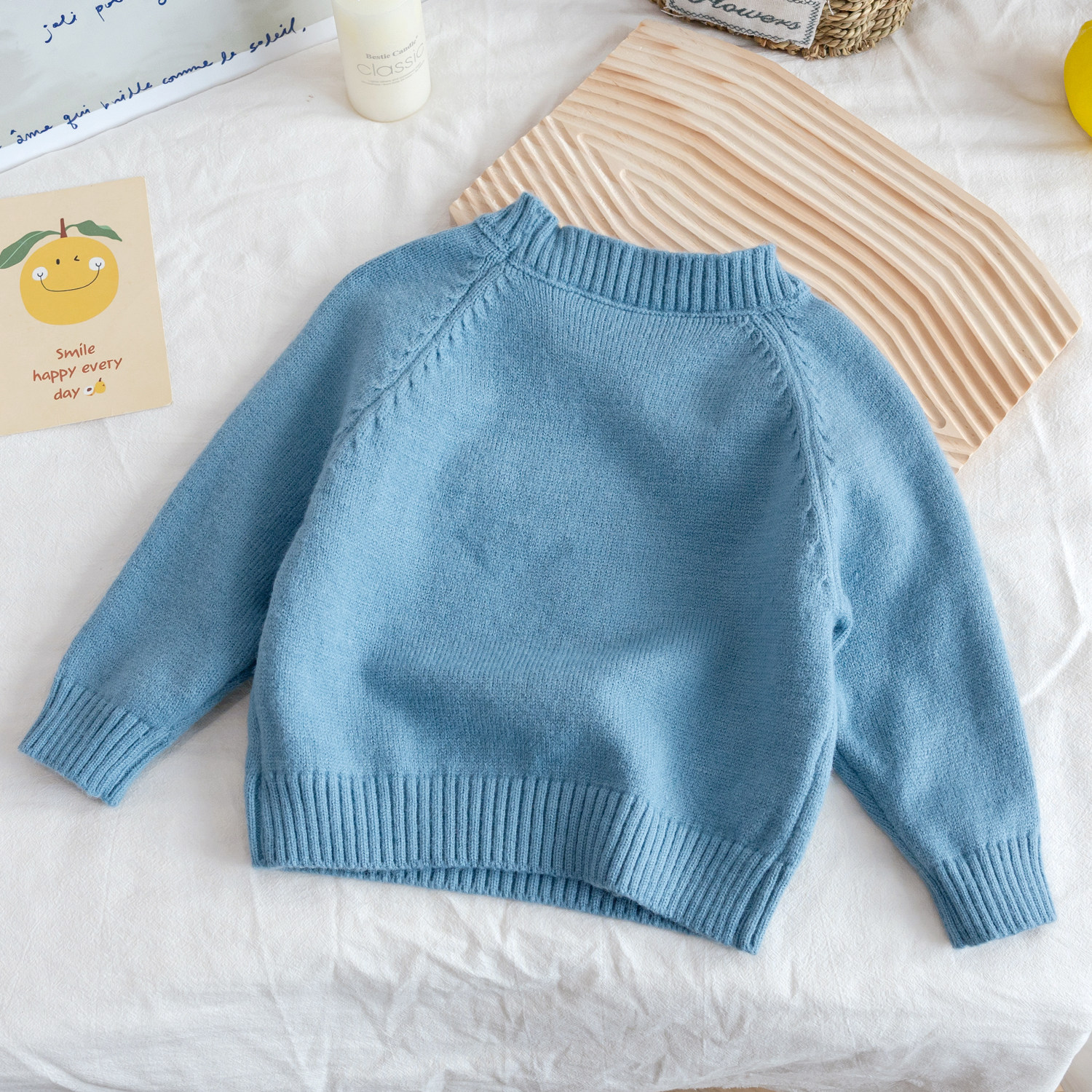女童新款2026春季毛衣女宝宝蓝色简约时尚长袖针织外穿圆领上衣潮