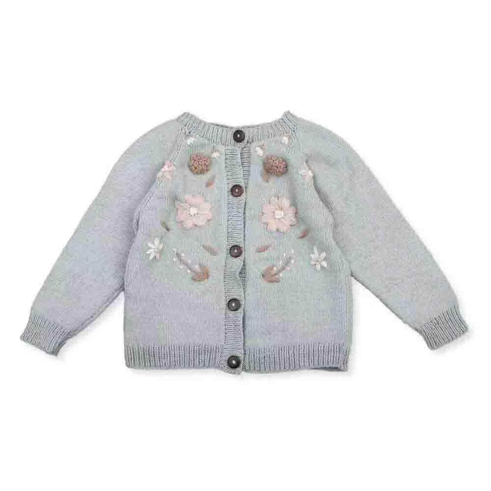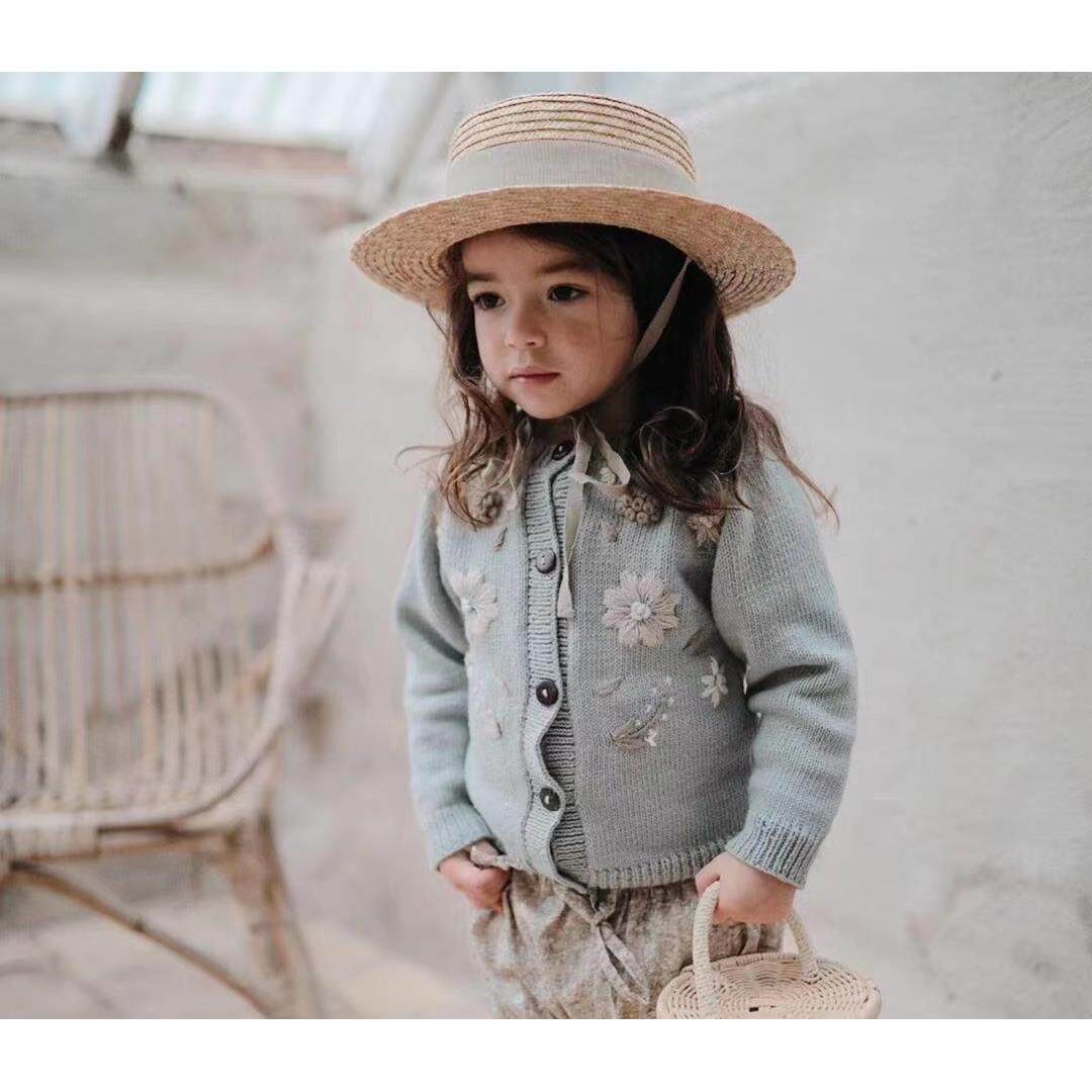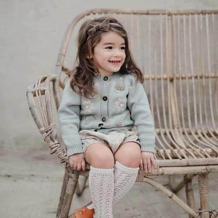 2026新款ins风秋冬女童绣花纯棉针织开衫女宝宝蓝色毛衣外
