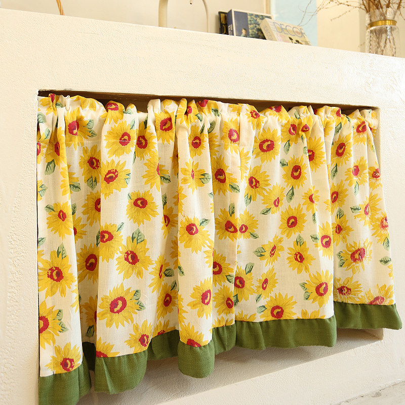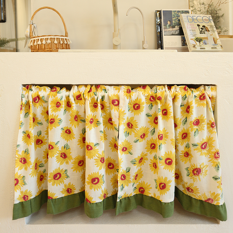 美式半帘防尘帘遮挡帘门帘向日葵穿杆免打孔挂钩粘贴可定制窗帘