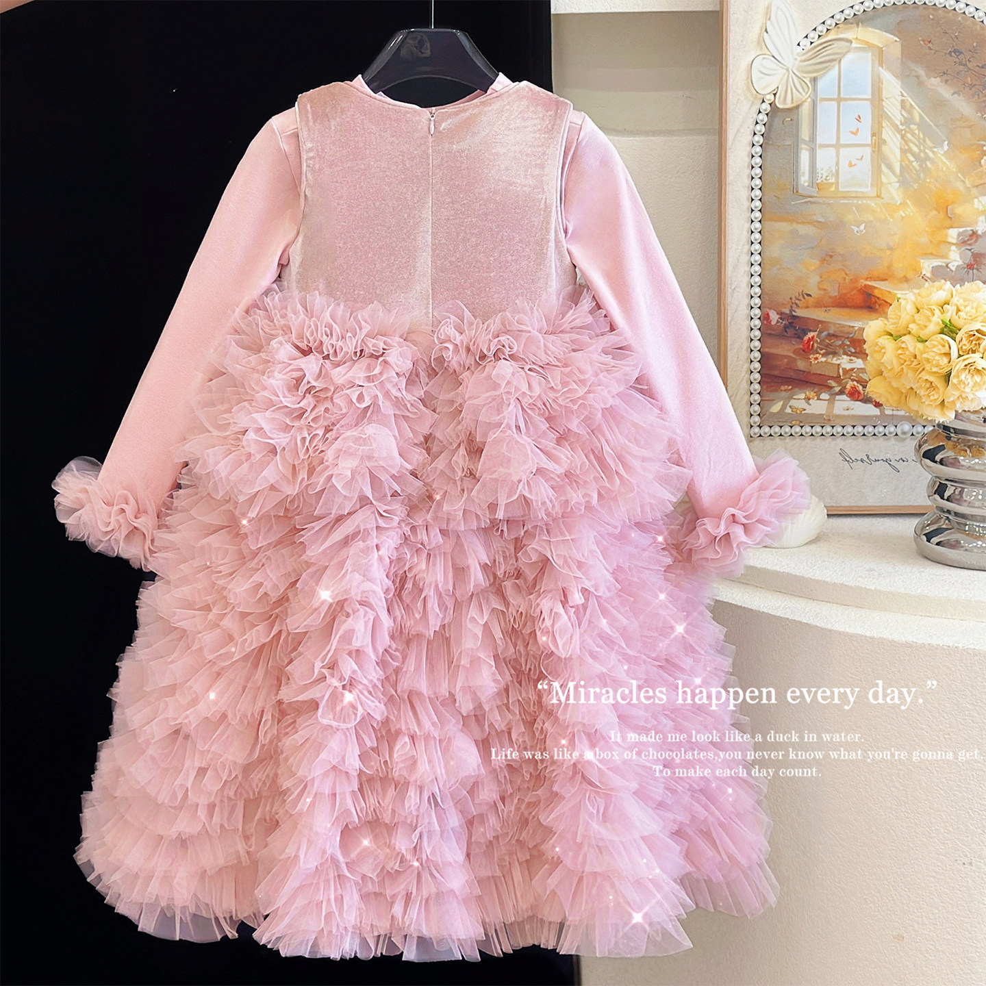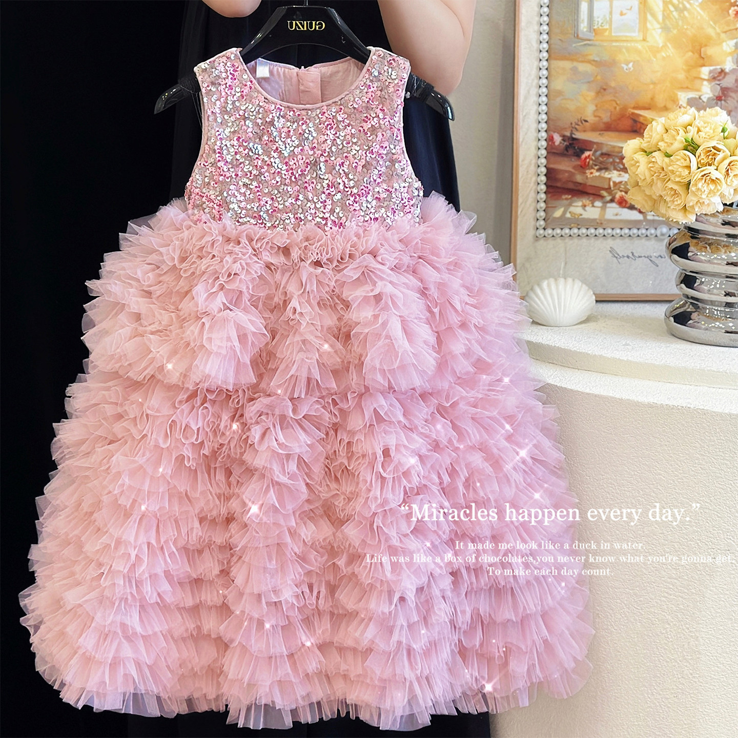 高定礼服女童连衣裙秋冬洋气闪闪公主裙儿童富家千金感生日宴裙子