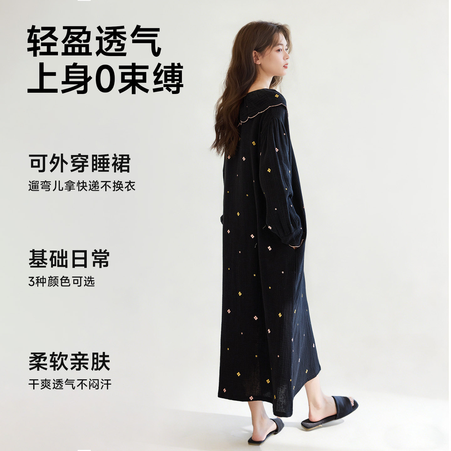 亲肤女士睡裙2026春秋新款长袖卡通甜美中长款连衣裙家居服睡衣
