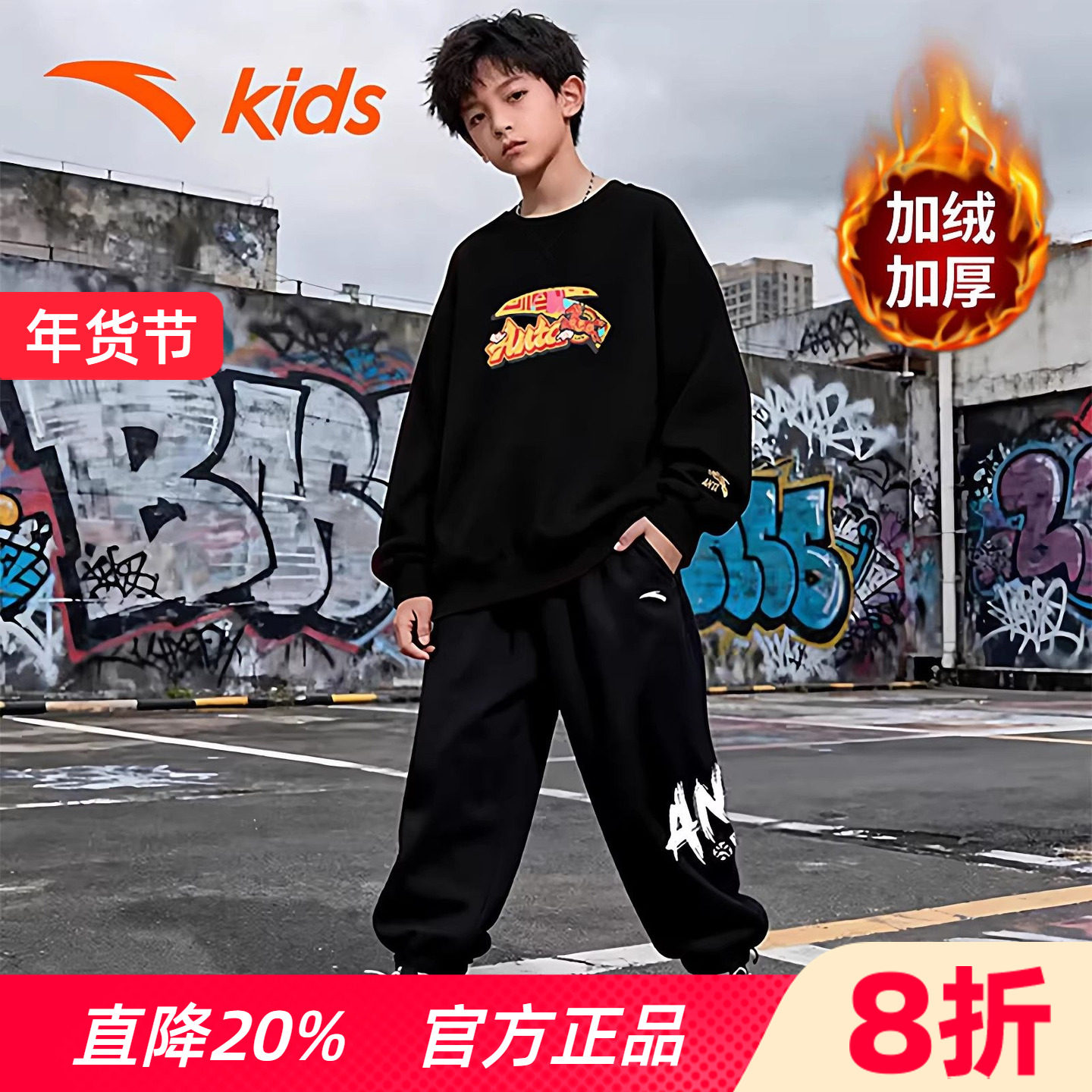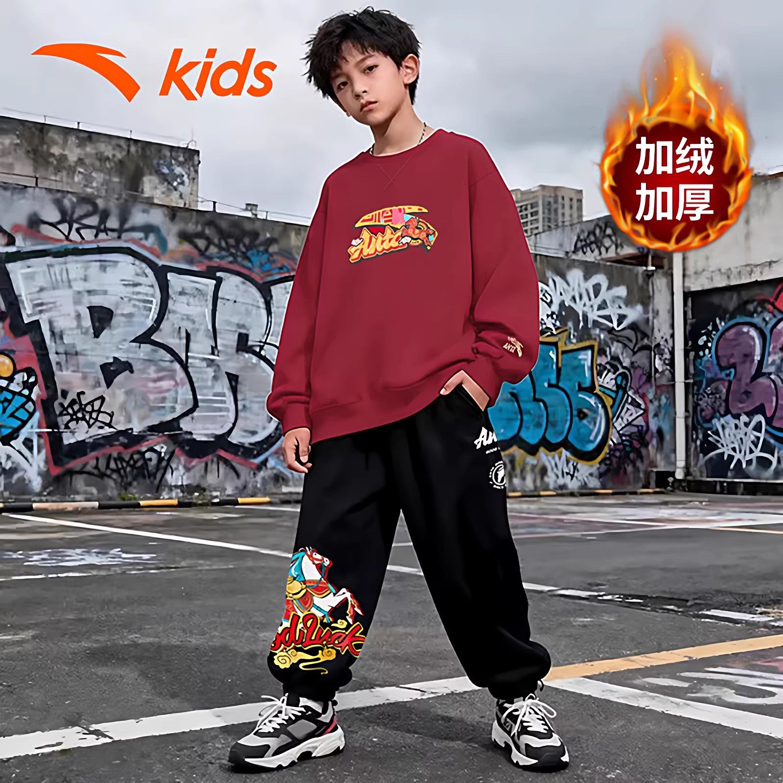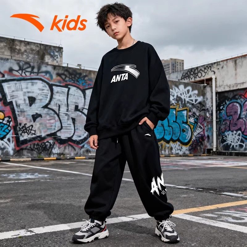 安踏童装男童卫衣套装加绒儿童运动服2026马年新年中大童长袖长裤