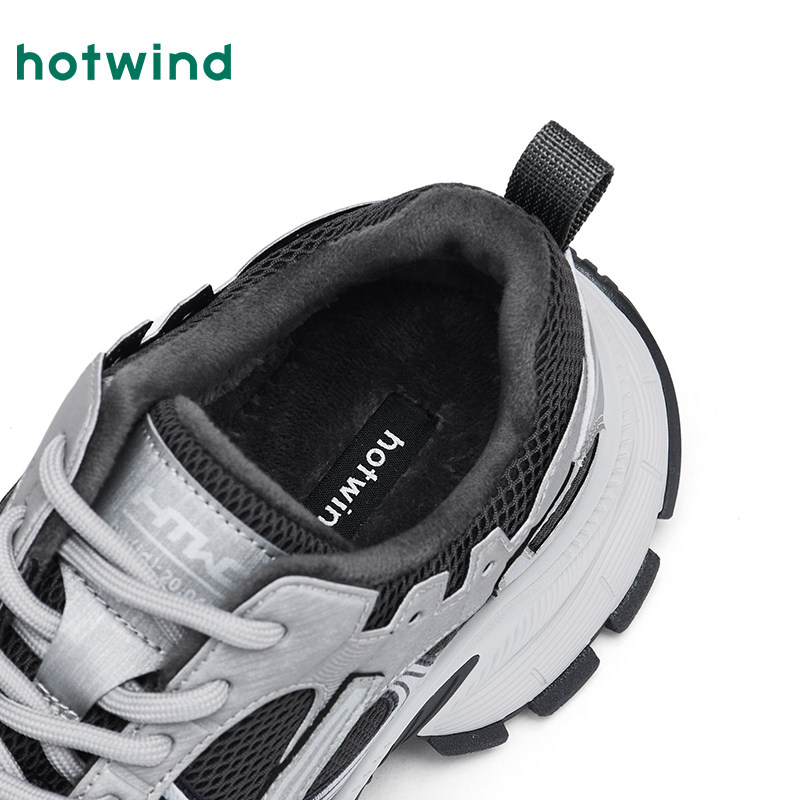 热风加绒老爹鞋女款2025年冬季新款厚底增高运动休闲鞋银灰色女鞋