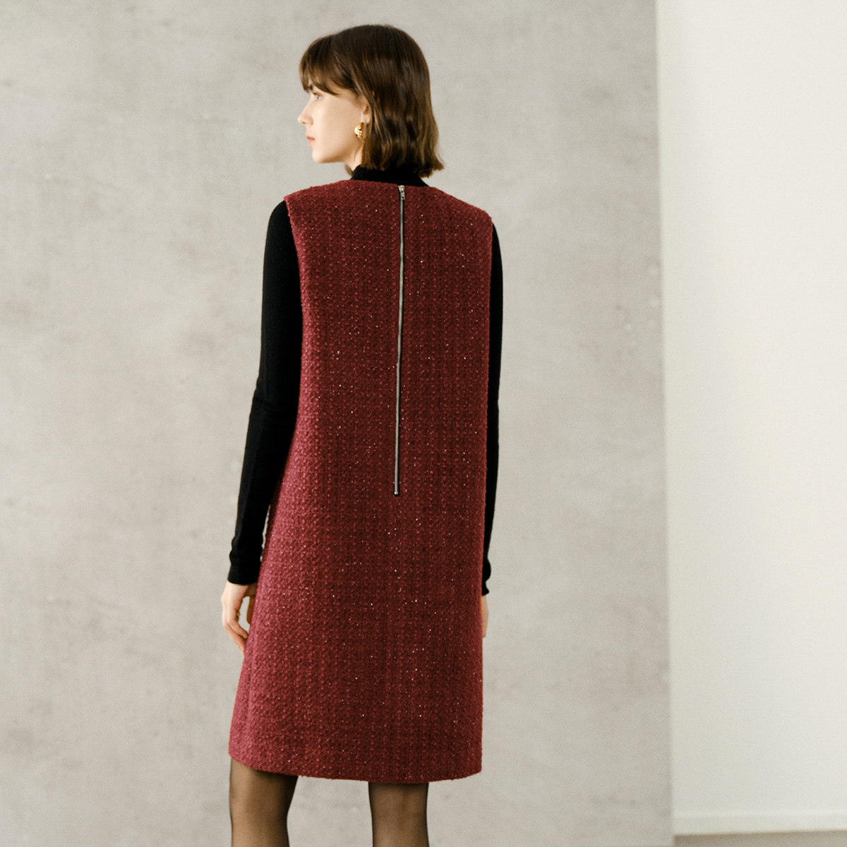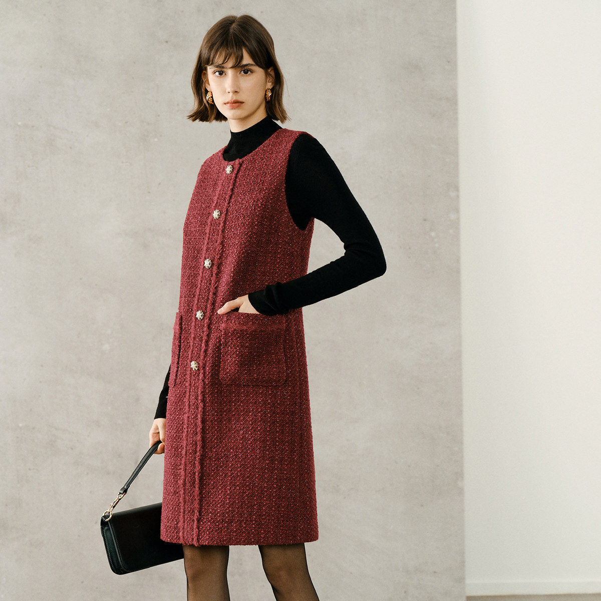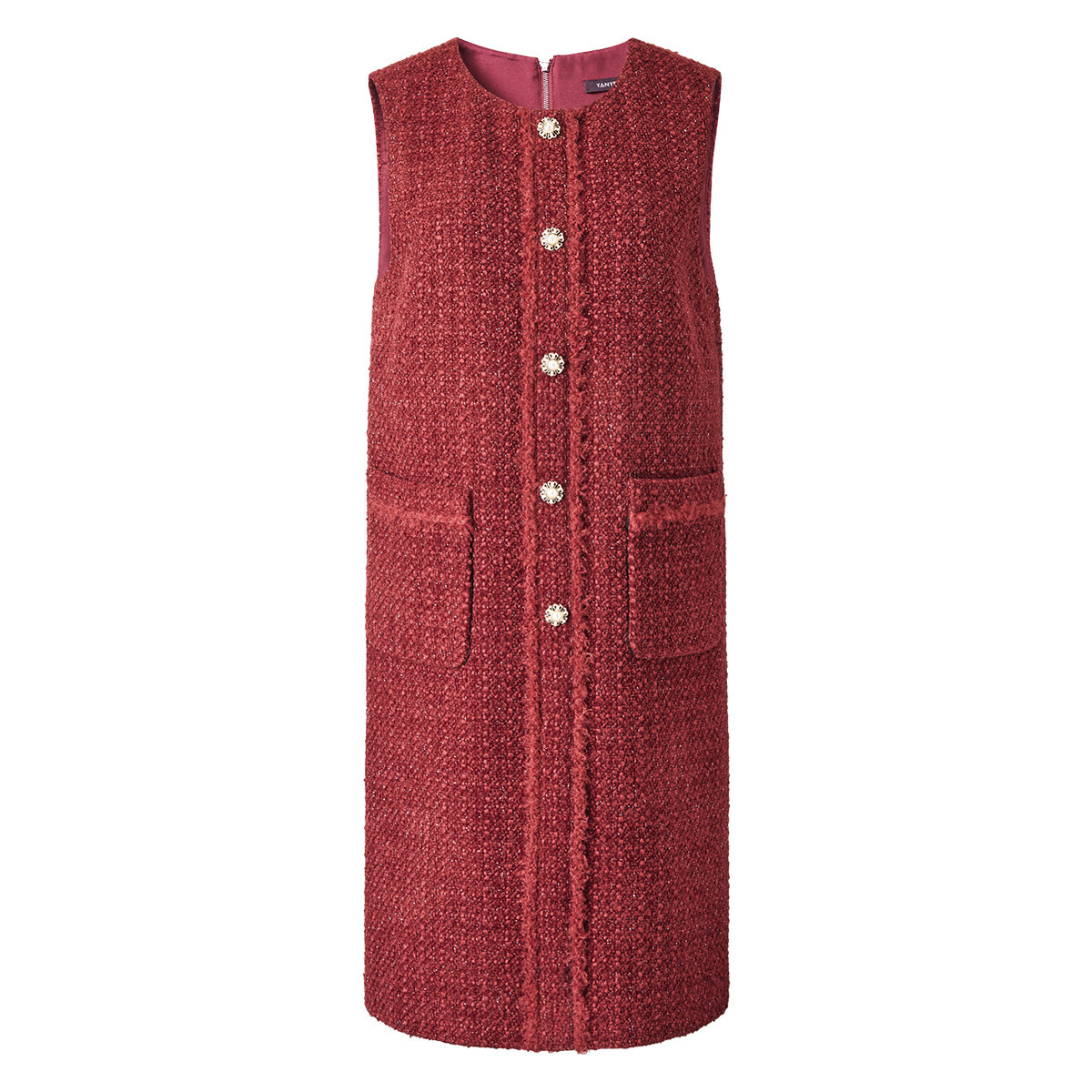 颜域红色小香风背心裙女装2025新款冬装中长款裙子宽松圆领连衣裙