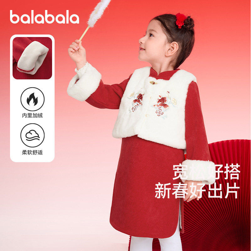 巴拉巴拉儿童套装女童连衣裙中大童中式两件套2026春季新款童装潮