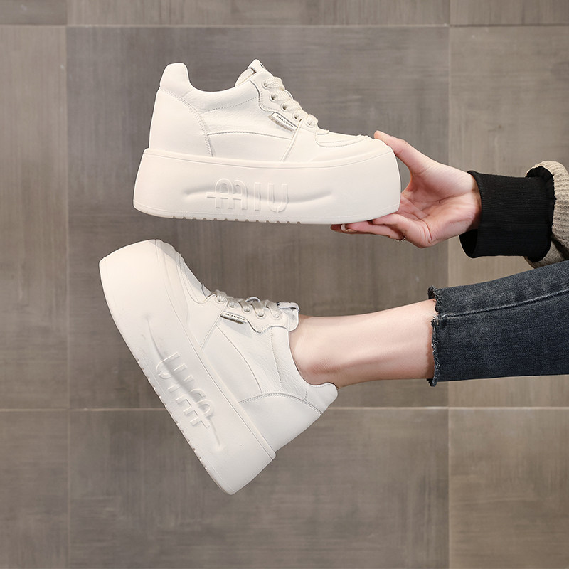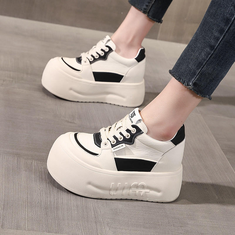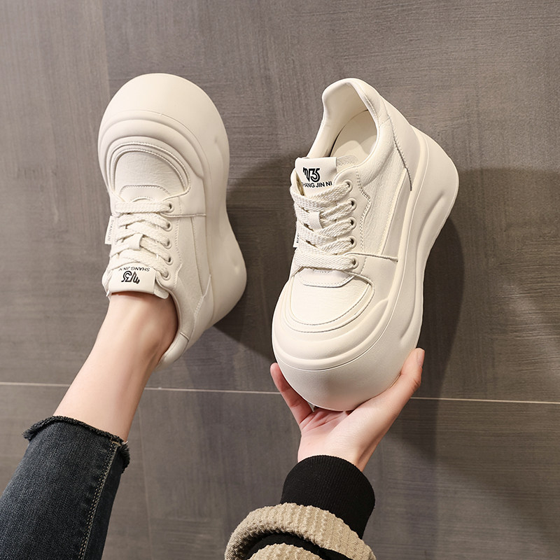 2025新款真皮厚底板鞋小个子10cm增高休闲鞋大头面包鞋超高跟女鞋