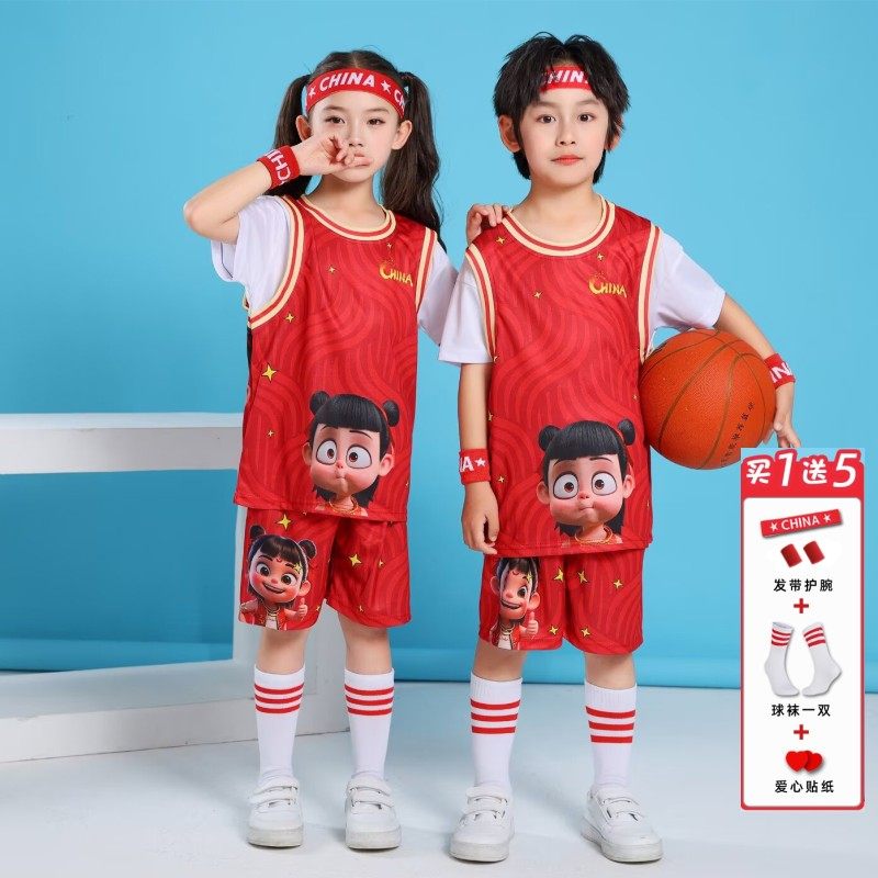 311线报网描述:哪吒少年儿童男女幼儿园篮球服 表演透气