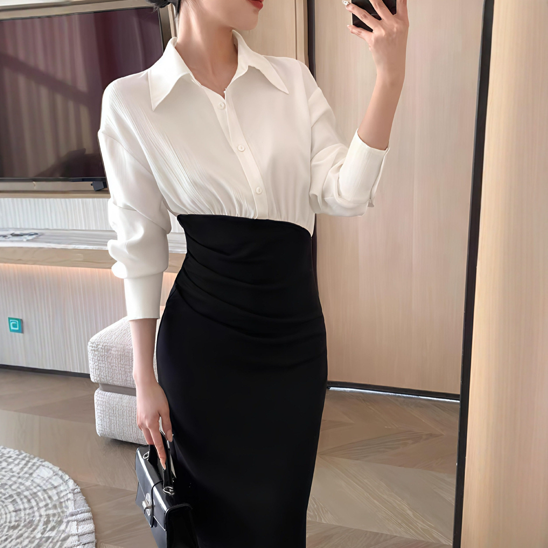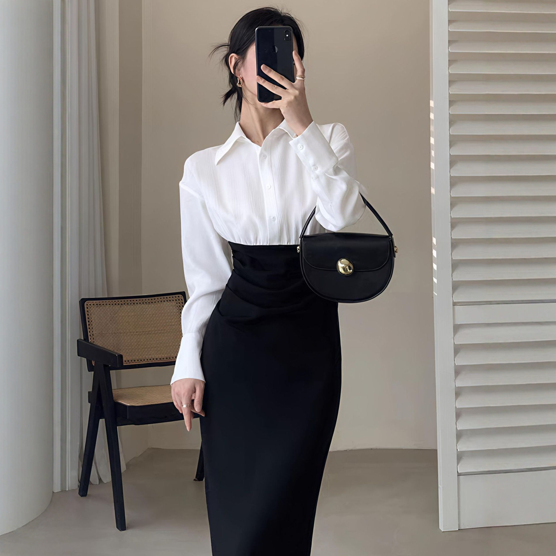 减龄轻奢设计感衬衫时尚连衣裙秋季新款高级感收腰显瘦气质长裙子