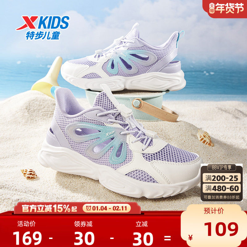 特步女童鞋2026新款夏季儿童鞋网面透气框子鞋凉鞋中大童轻便鞋子