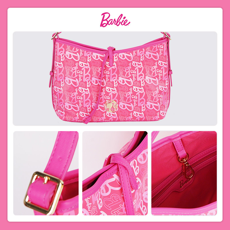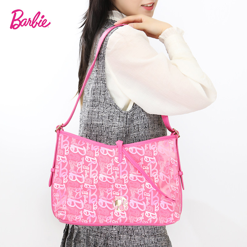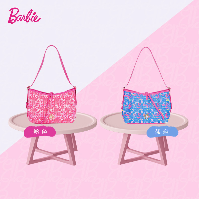 【Barbie芭比官方正品】粉色高级印花百搭单肩包女款包包斜挎礼物