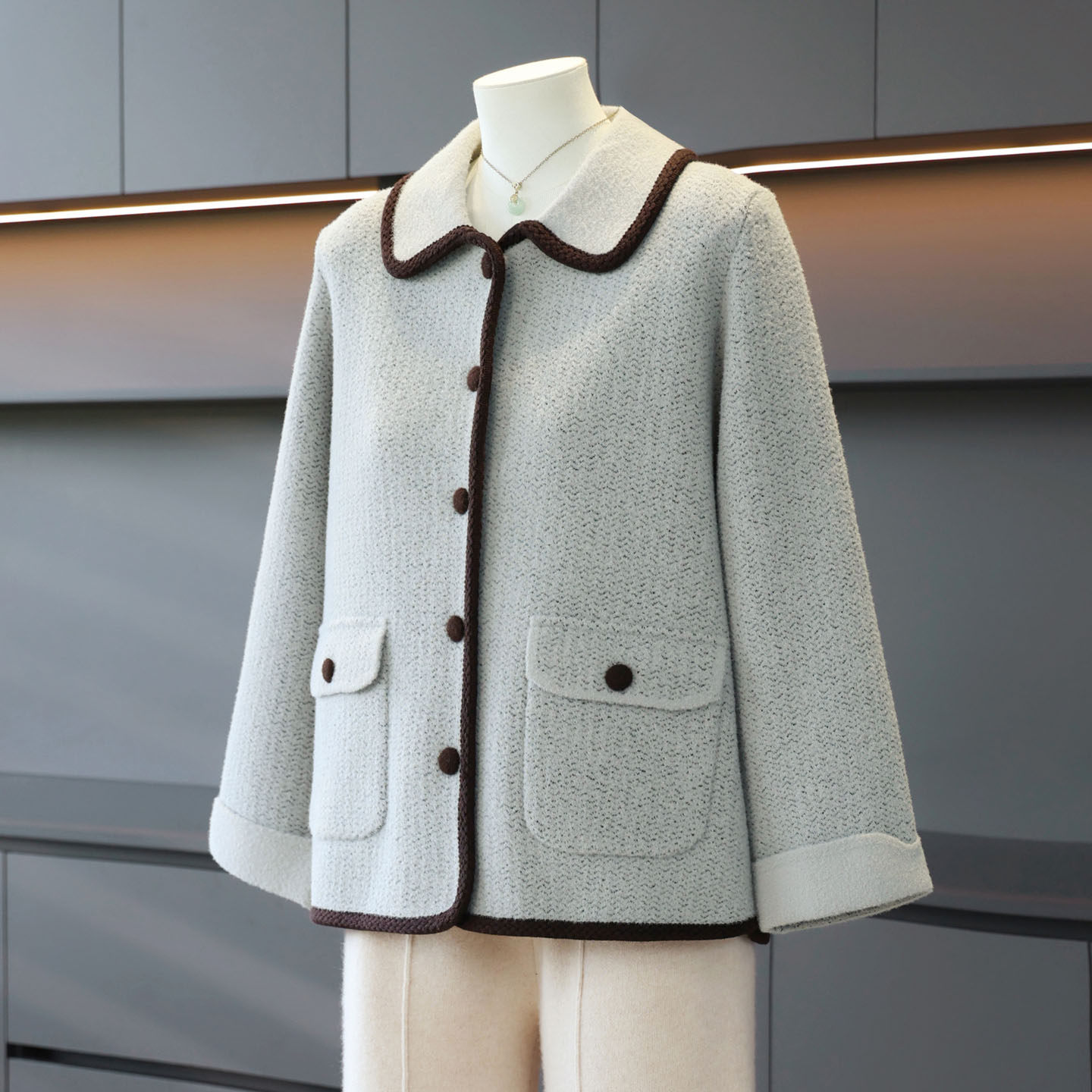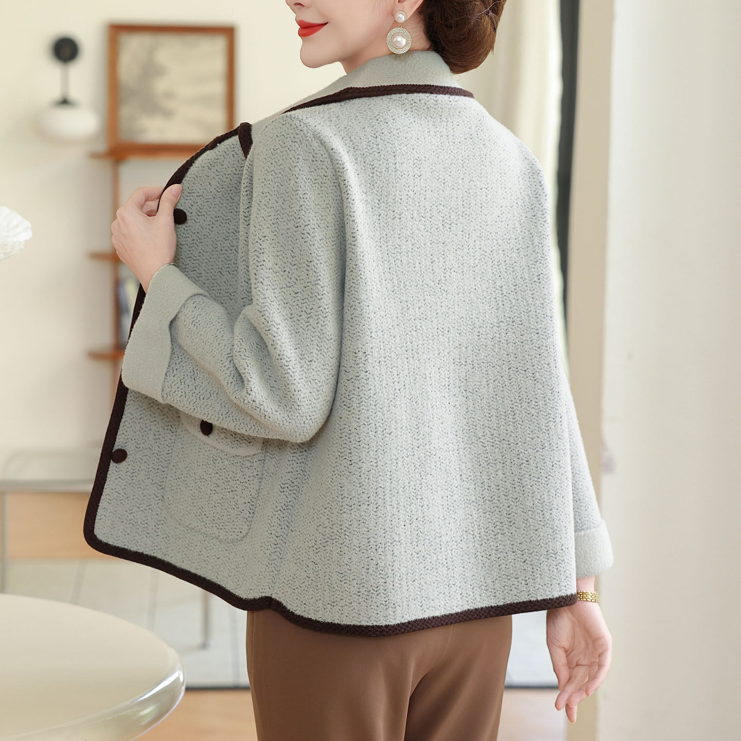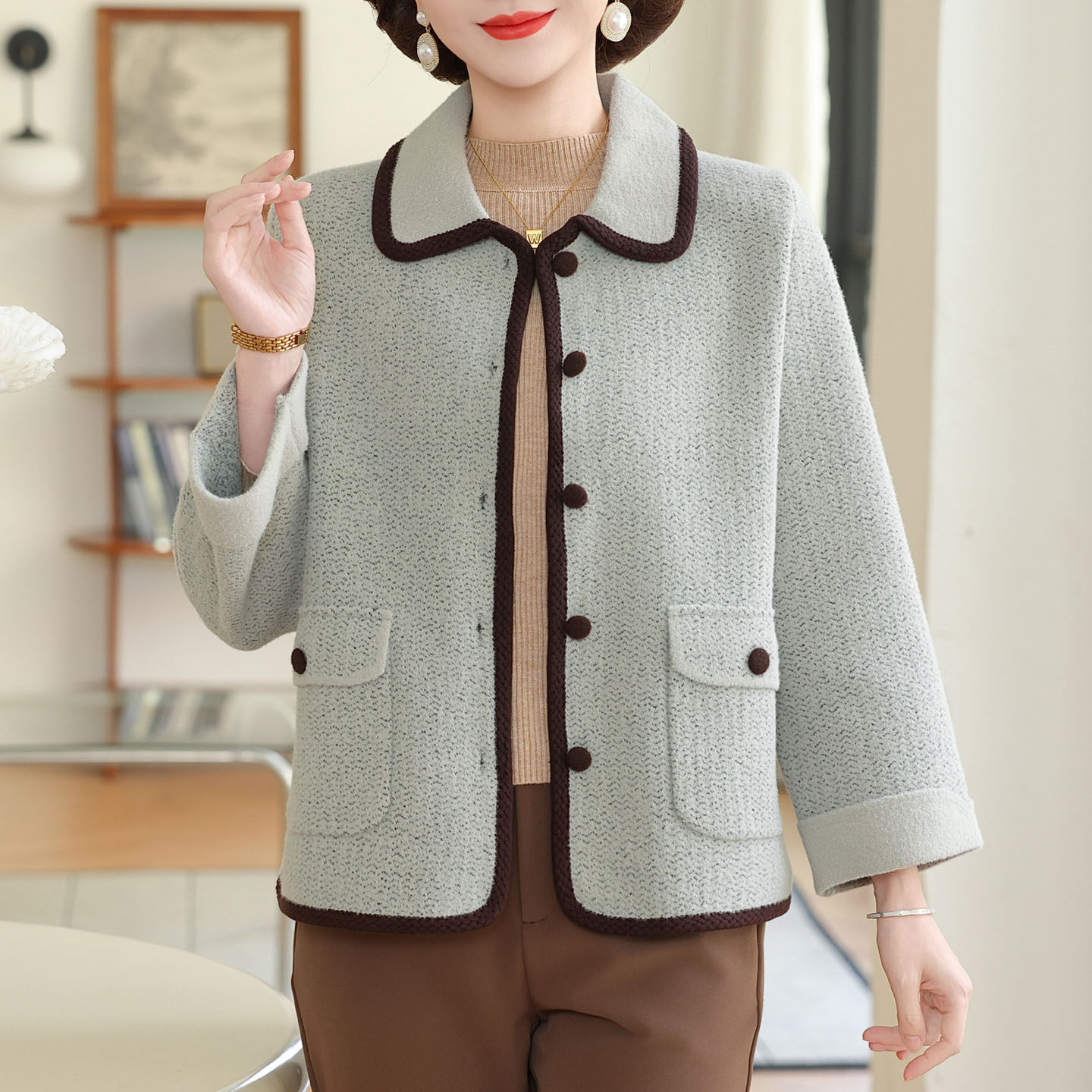中老年女装春秋新款毛呢外套50高级感中年妈妈秋冬装洋气针织上衣