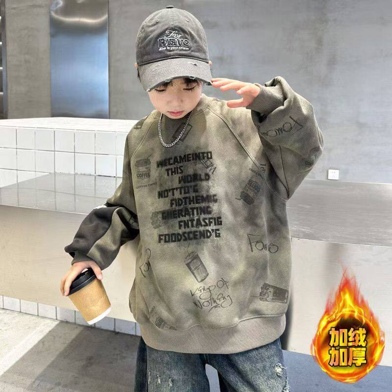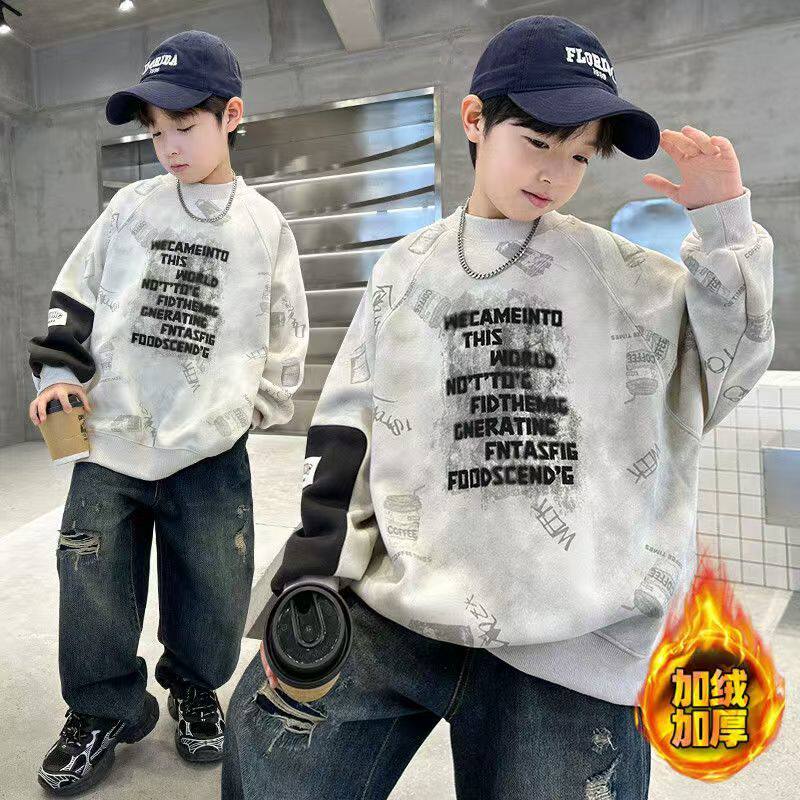 儿童装男童冬装加绒加厚卫衣2026新款秋冬款中大童男孩冬季上衣潮