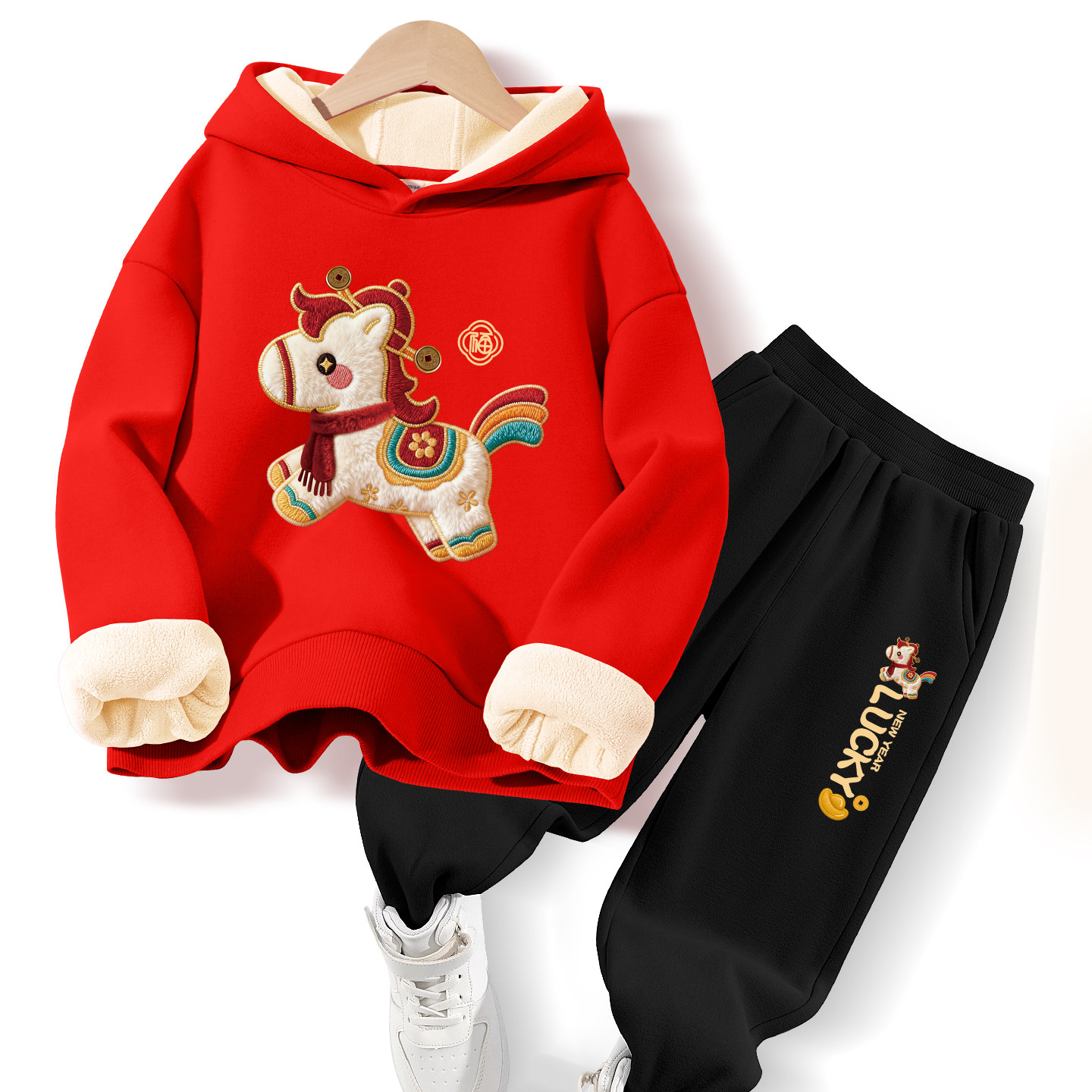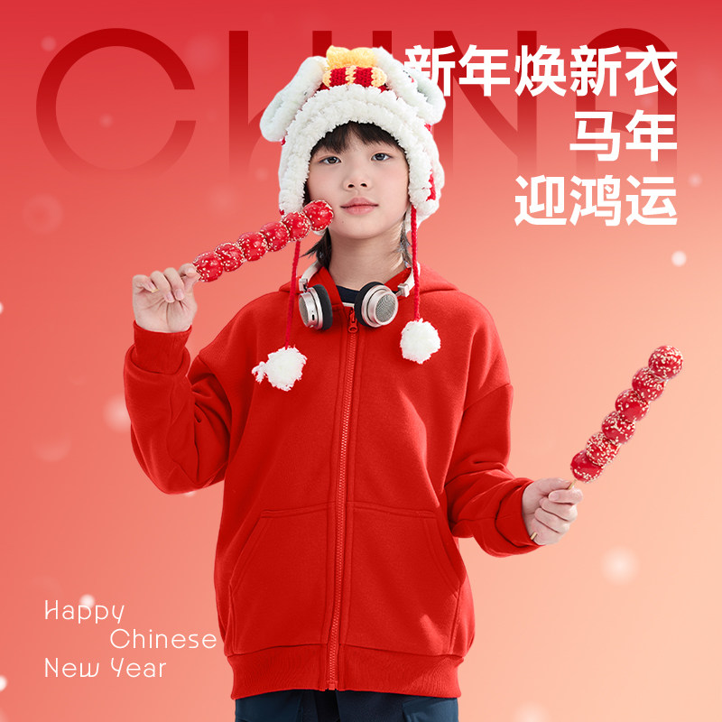 红豆童装儿童过年衣服男童冬装套装本命年新年衣服12岁女童拜年服