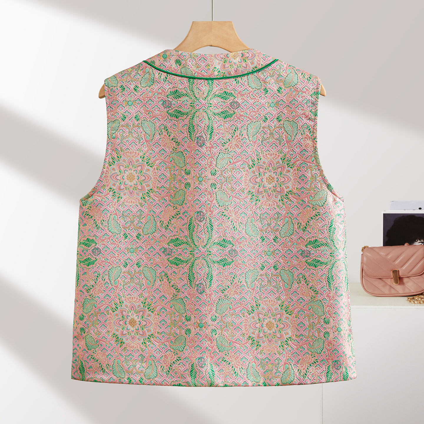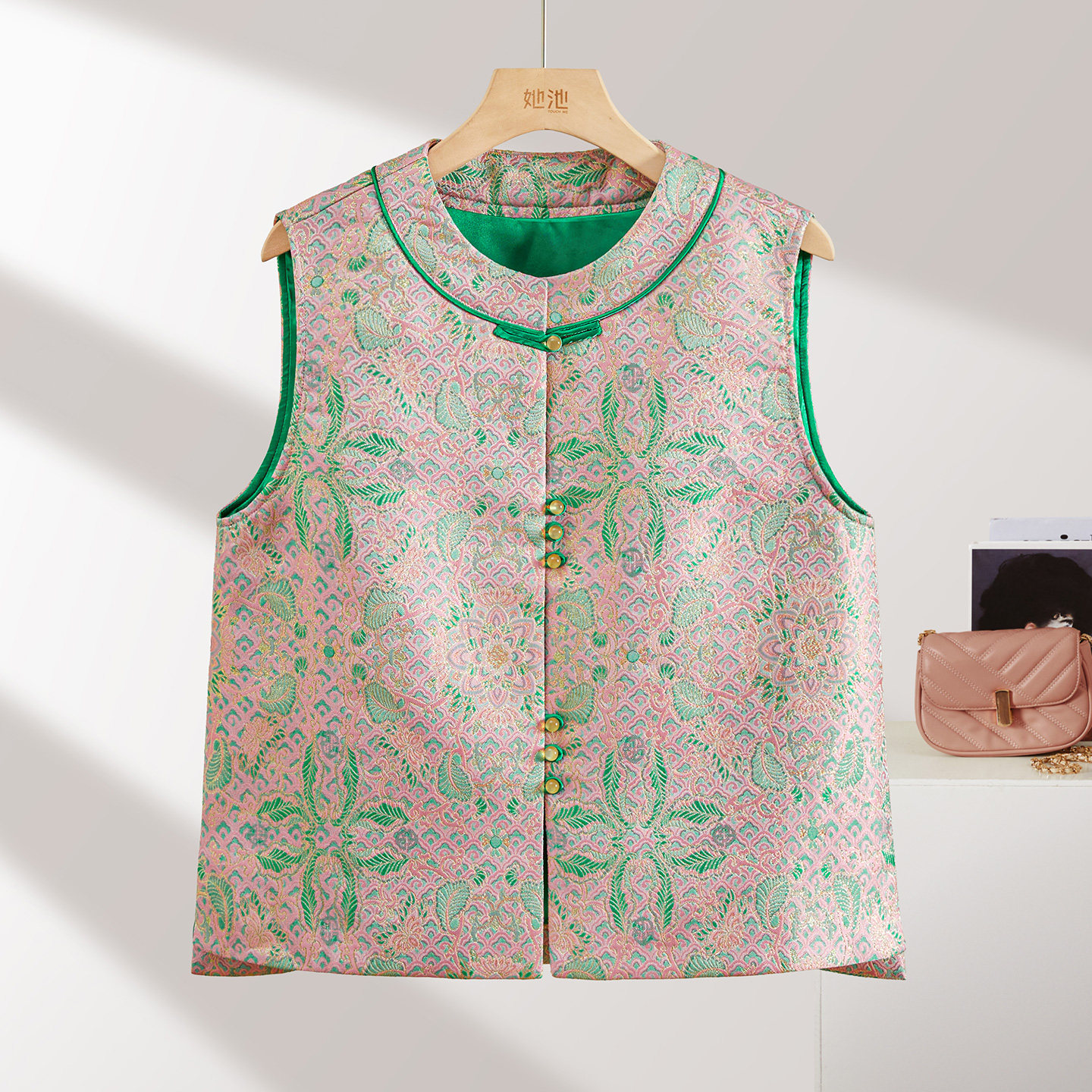她池圆领马夹2026春装新款女装短款单排扣国风复古宽松款棉马甲