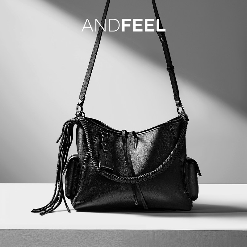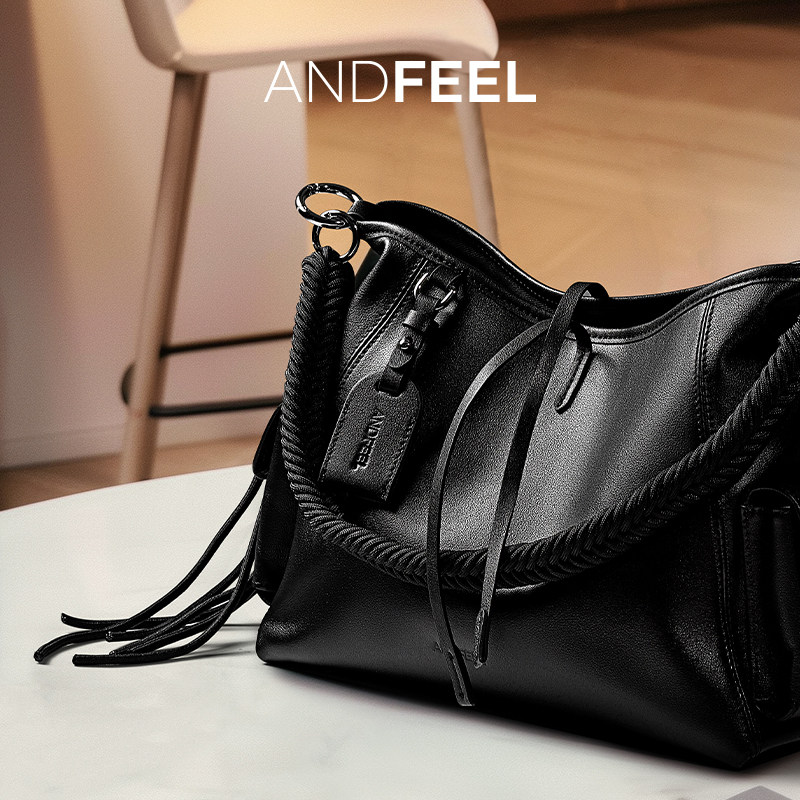 ANDFEEL黑武士大容量托特包高级感牛皮单肩女款黑色