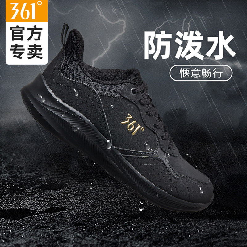 361黑色运动鞋男秋季新款青少年学生鞋子减震Q弹皮面跑步鞋男款