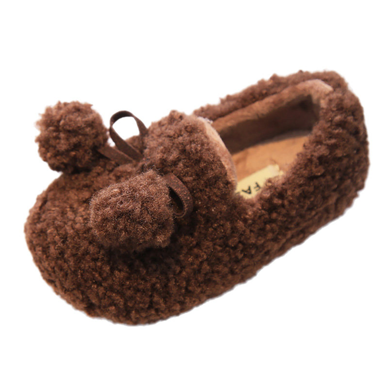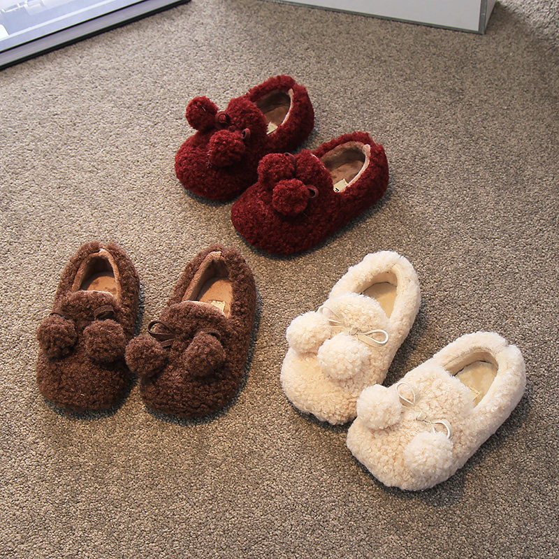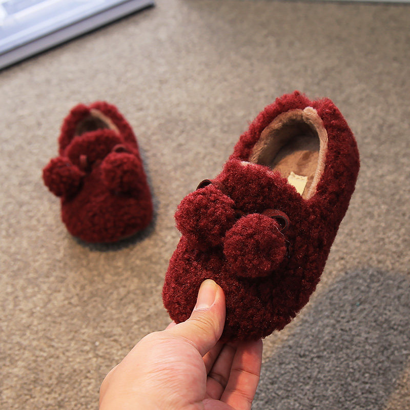 女童毛毛鞋红色宝宝二棉鞋子公主鞋2024冬季款儿童小童豆豆鞋加绒