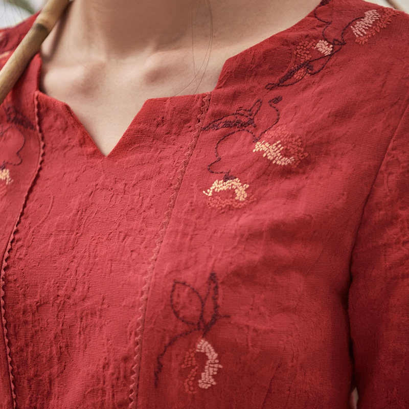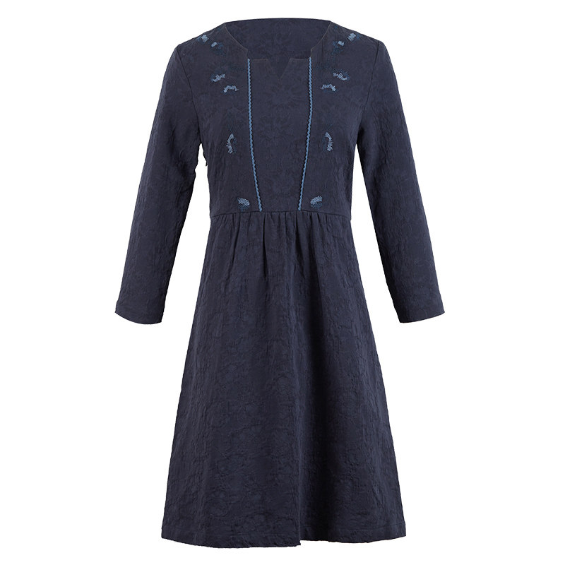 布符长袖中长款民国收腰复古宽松连衣裙女
