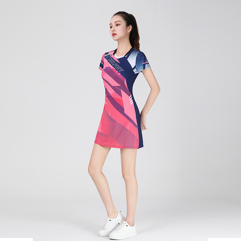 羽毛球服女连衣裙速干短袖套装大码运动短袖吸汗透气韩版网球服