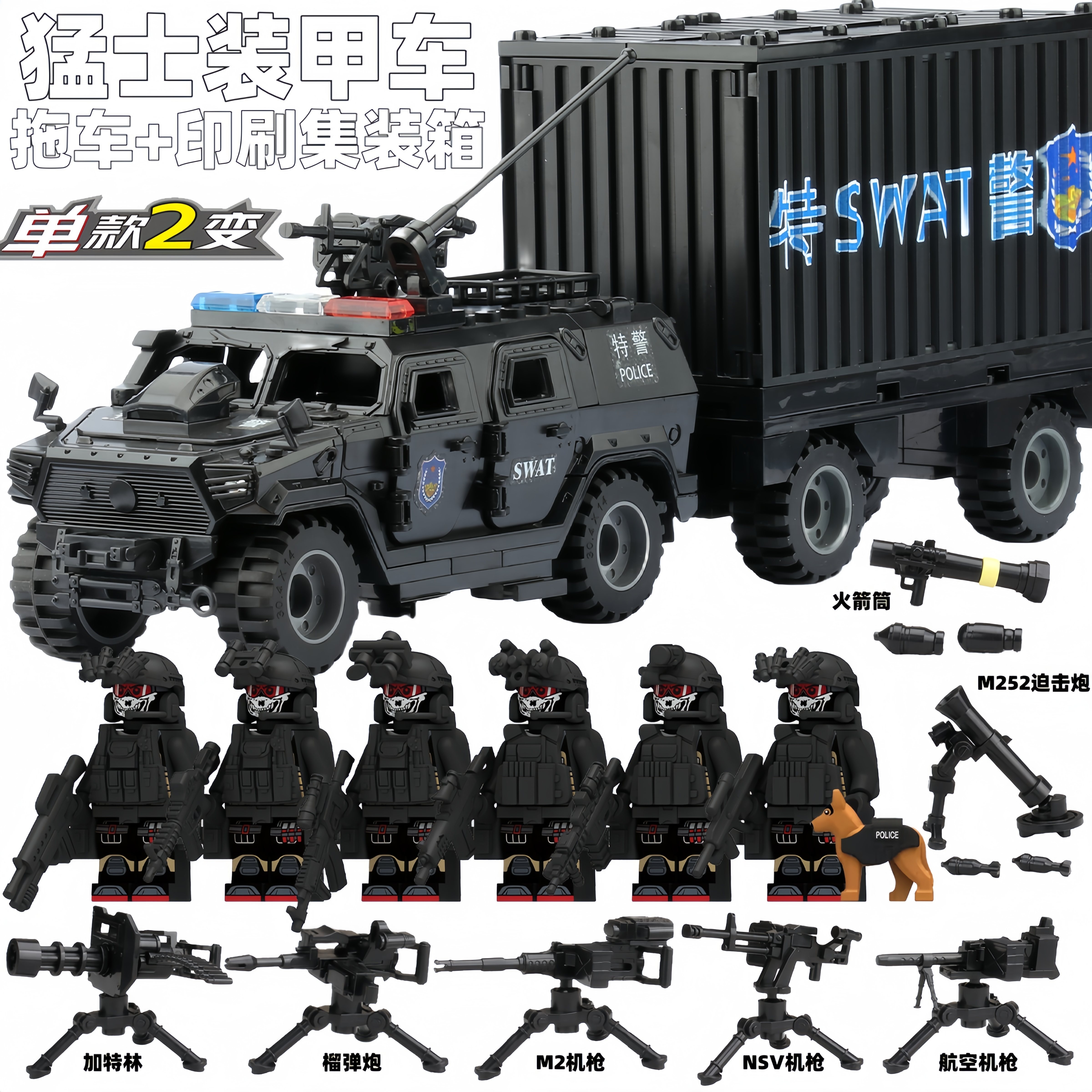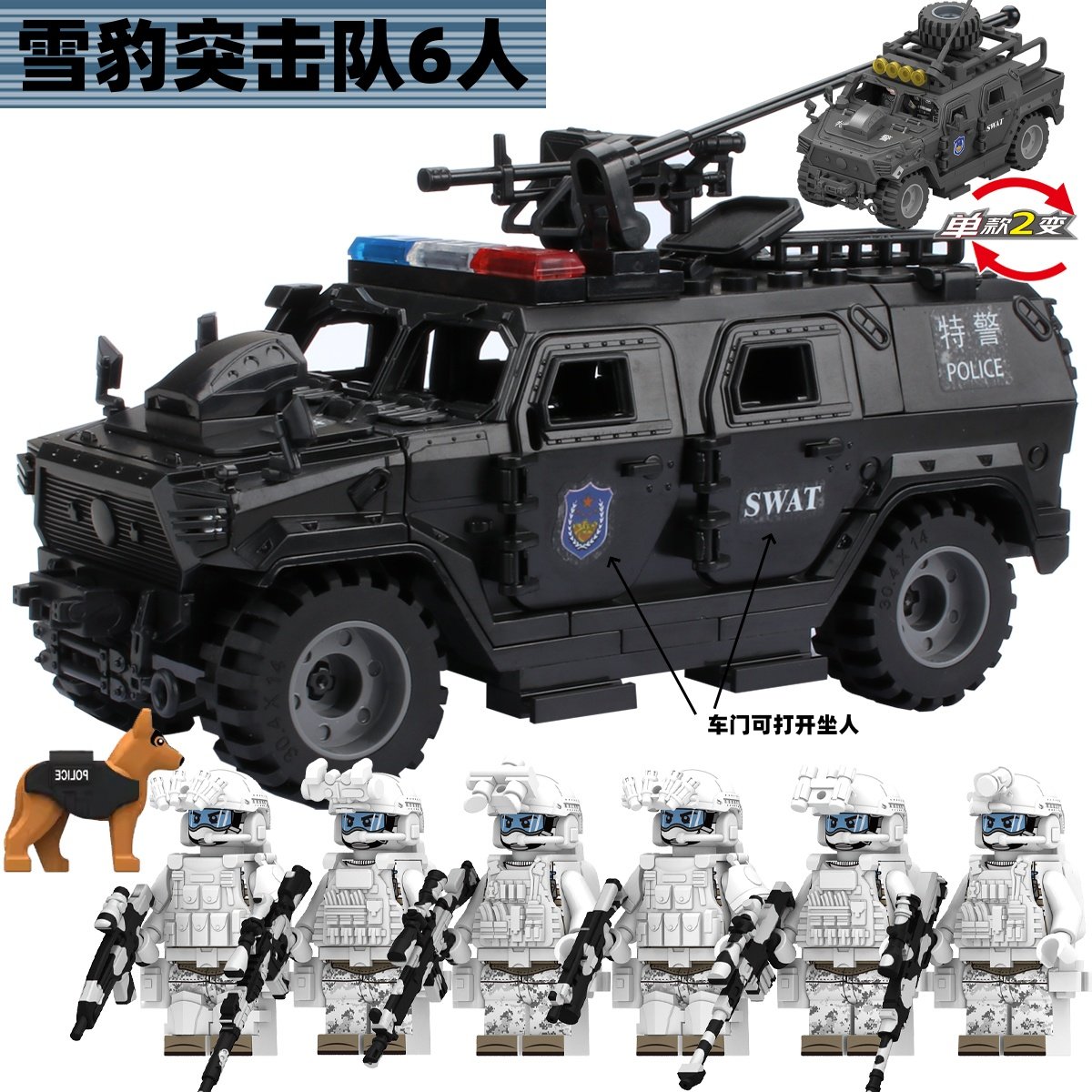 适用于乐高军事人仔积木特警特种兵警察悍马猛士装甲车拼装玩具