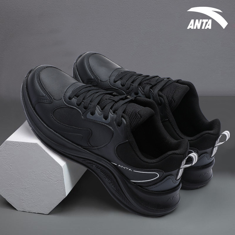 安踏男鞋漫步休闲跑步鞋冬季2026新款皮面透气防滑百搭运动鞋男款