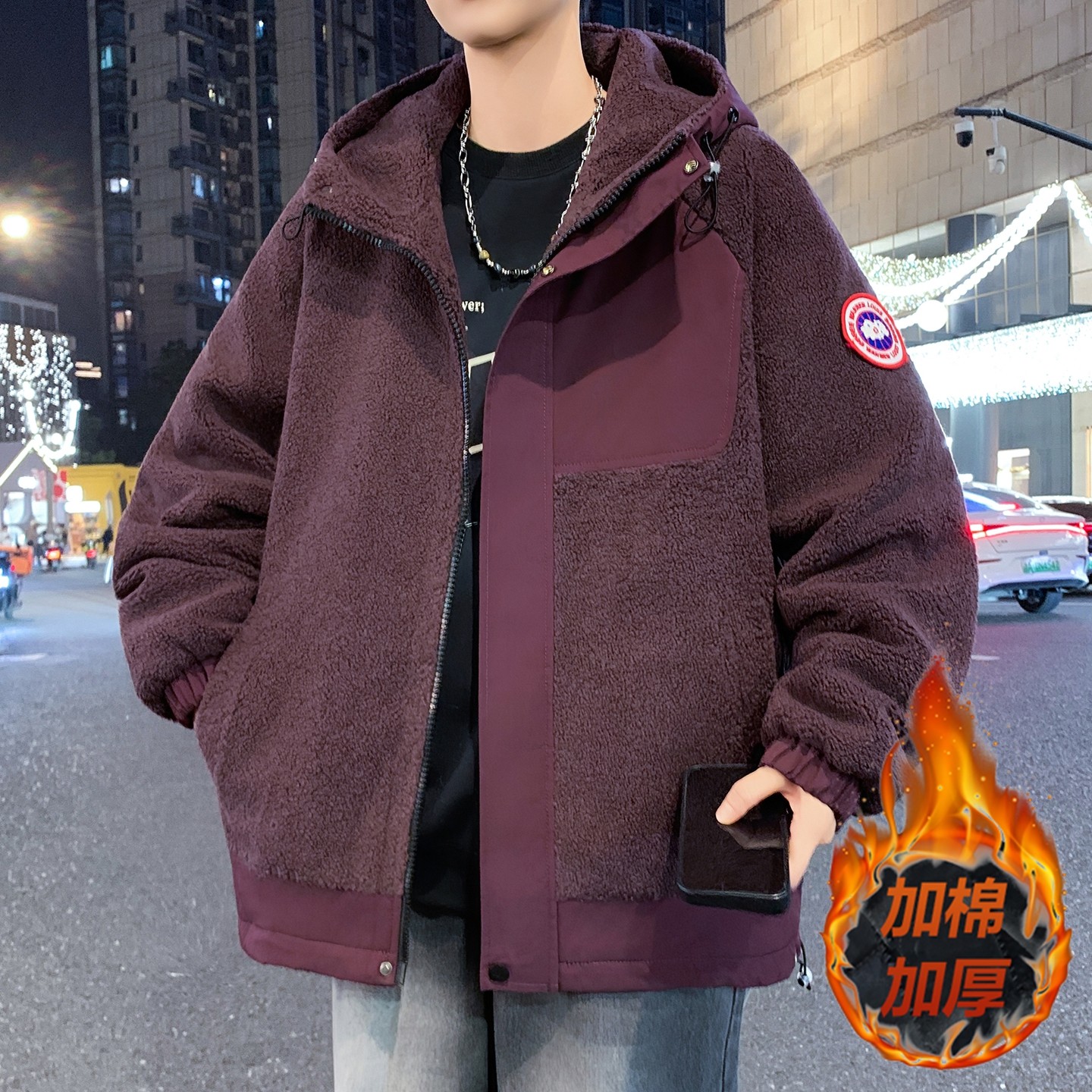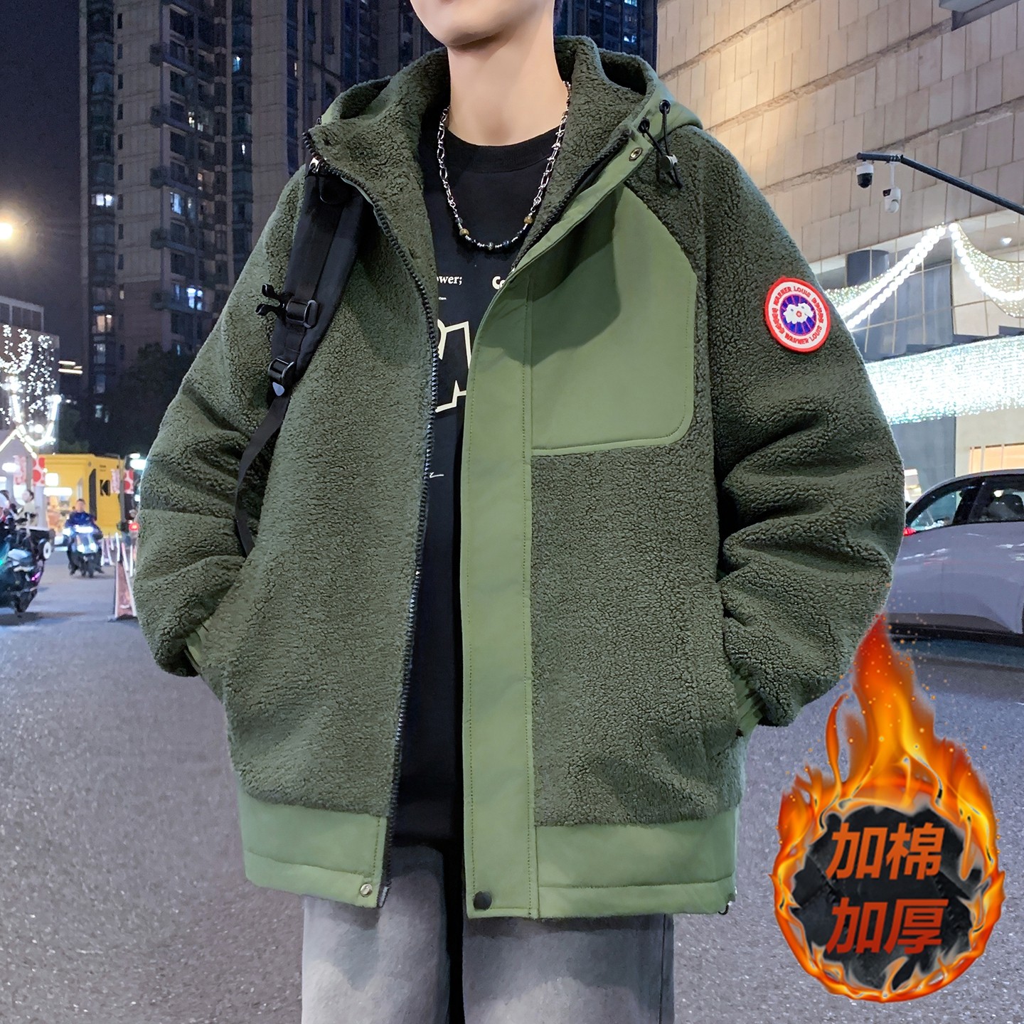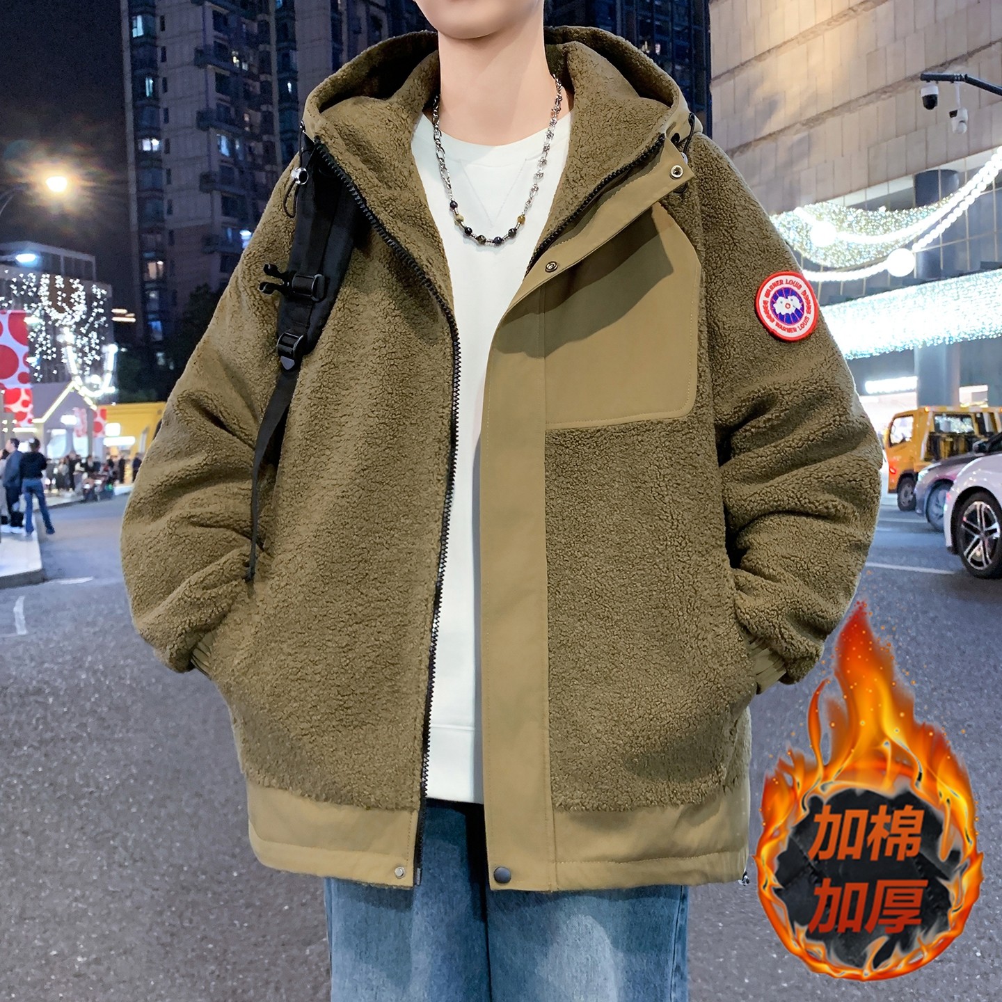 冬季羊羔绒外套男孩初中高中学生加绒加厚夹克青少年大童冬装棉服