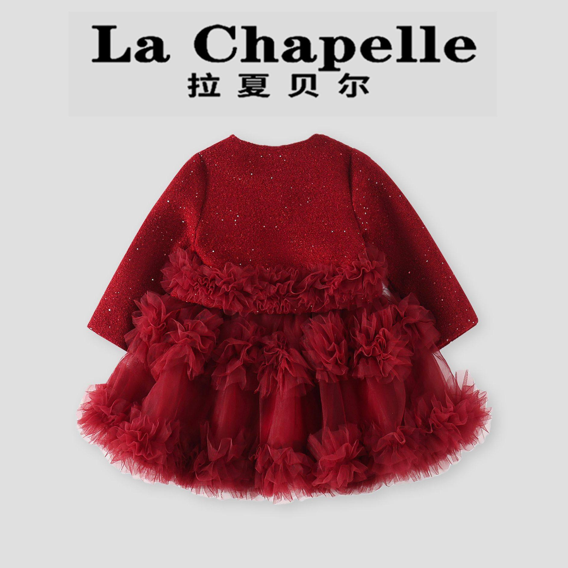 拉夏贝尔女童冬季连衣裙套装时尚红色拜年服儿童加绒蓬蓬裙两件套