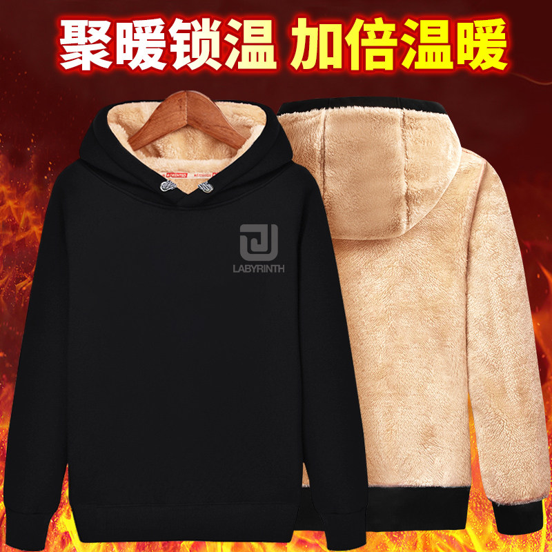 加绒卫衣男冬季2025新款青少年加厚保暖连帽外套羊羔绒运动套装男