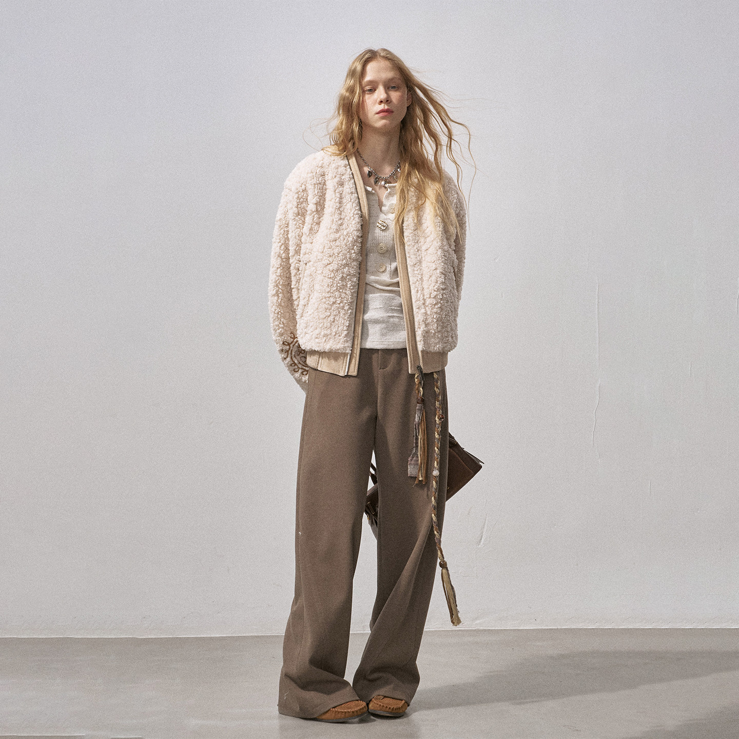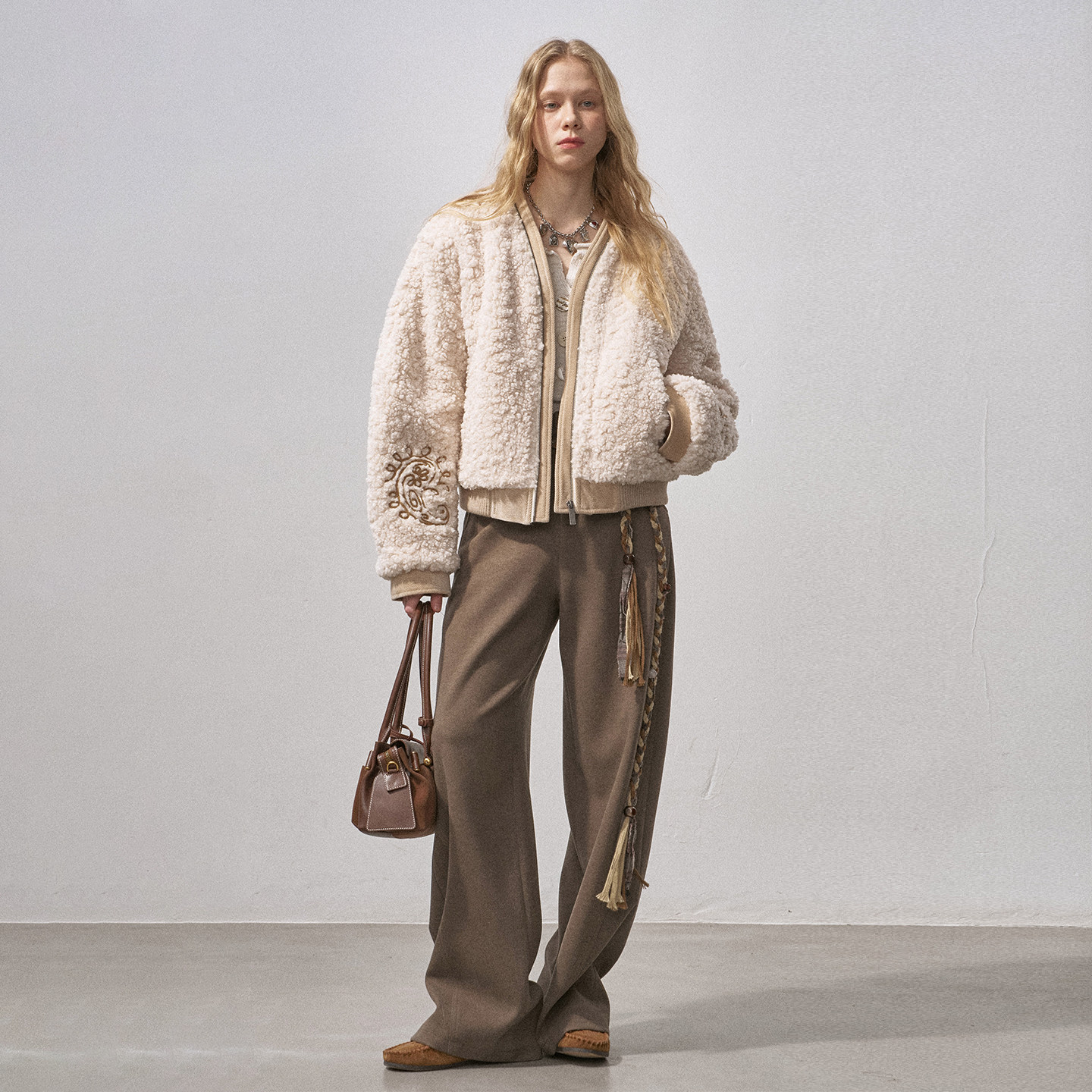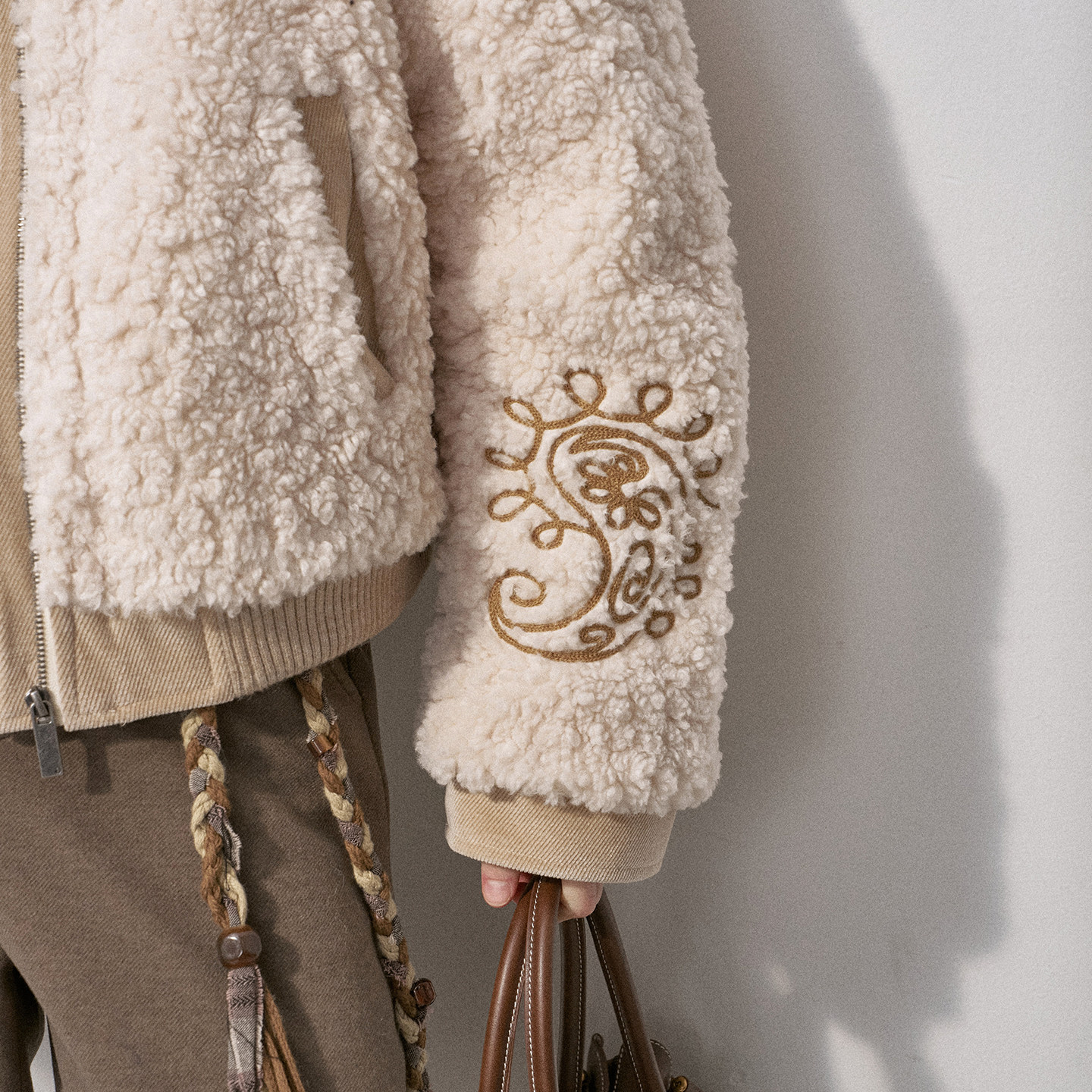 DIDDI MODA羊羔毛腰果刺绣女装冬装新款上新派克加绒加厚棉服外套