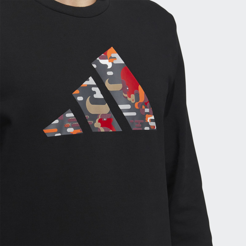 阿迪达斯新年款卫衣长裤男装套装2024新款圆领套头衫小脚裤运动裤