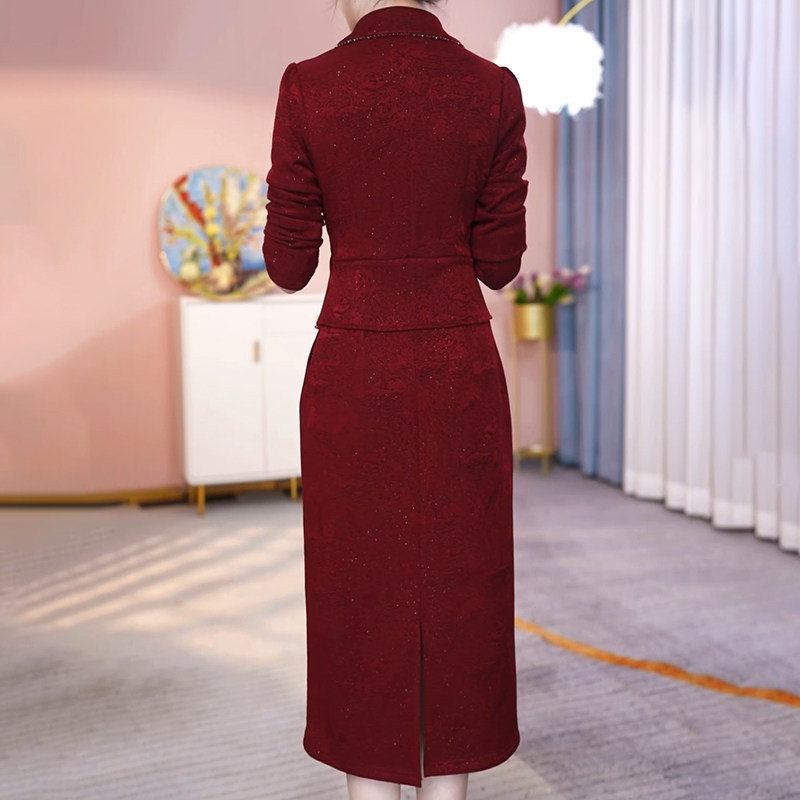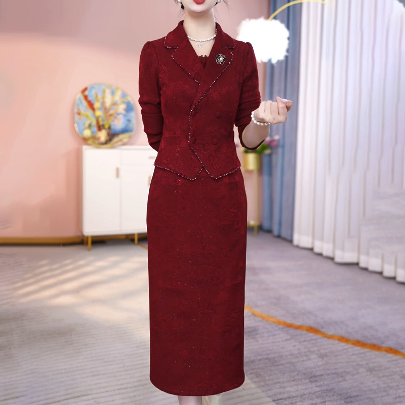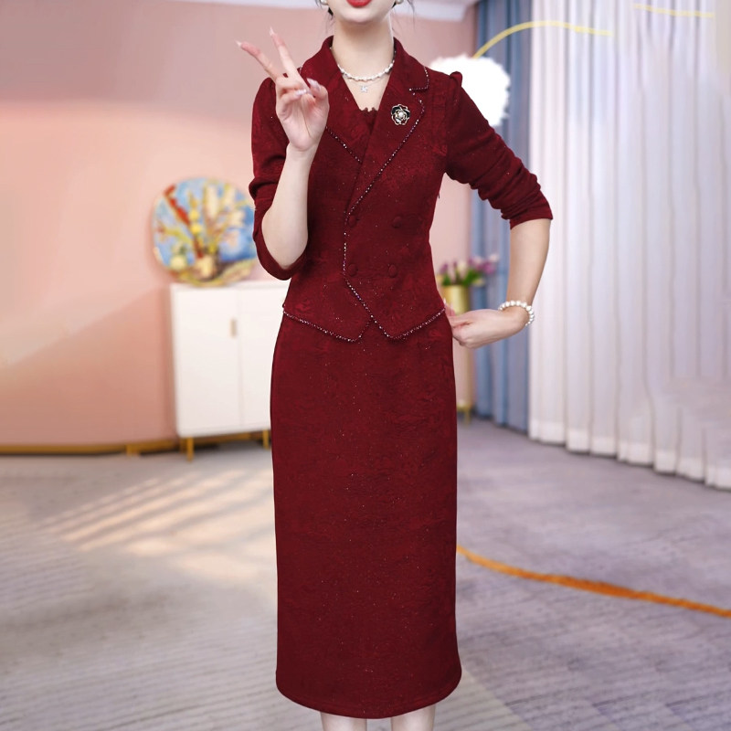 连衣裙2024新款女秋冬加厚轻奢高级感喜婆婆婚宴装妈妈礼服配大衣