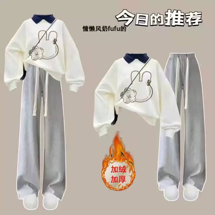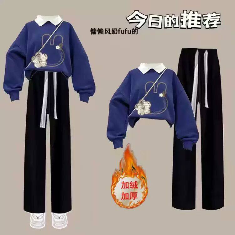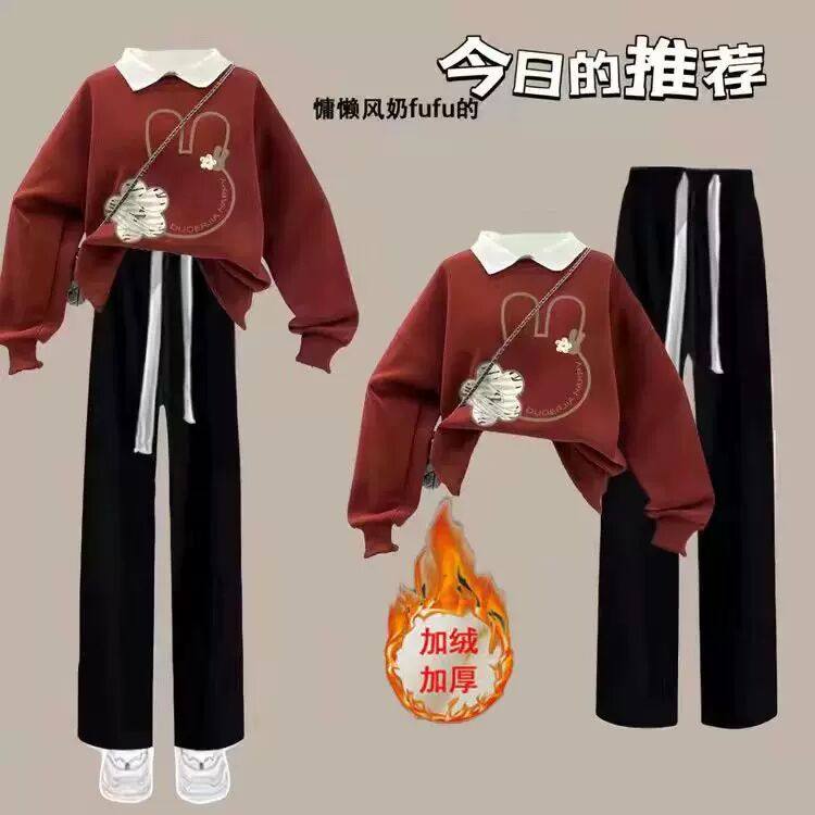 初中少女加绒加厚polo卫衣套装学生衣服搭配秋冬季女孩中大童冬装