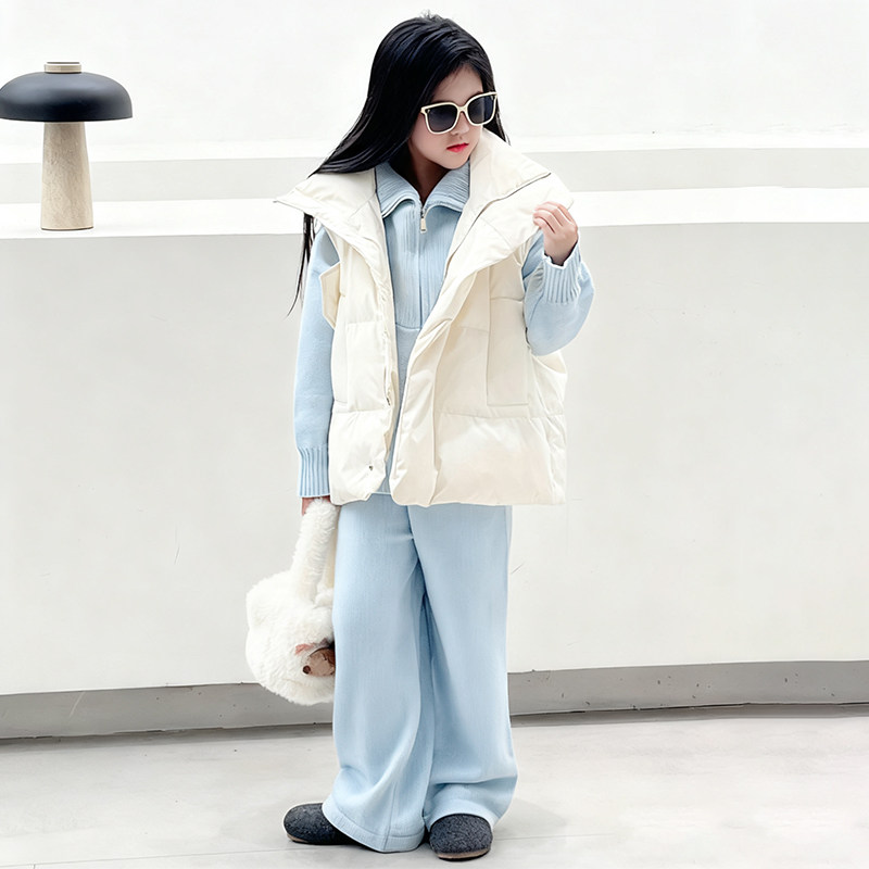 初中生女孩冬装套装女童羽绒马甲三件套儿童冬季穿搭一整套高级感