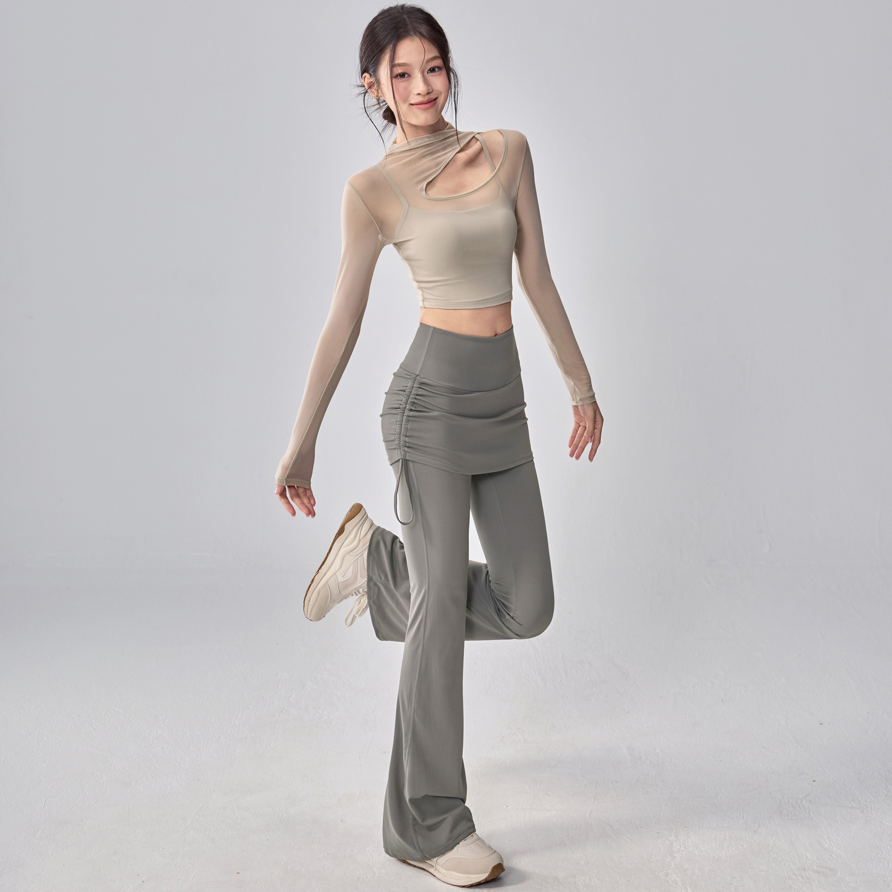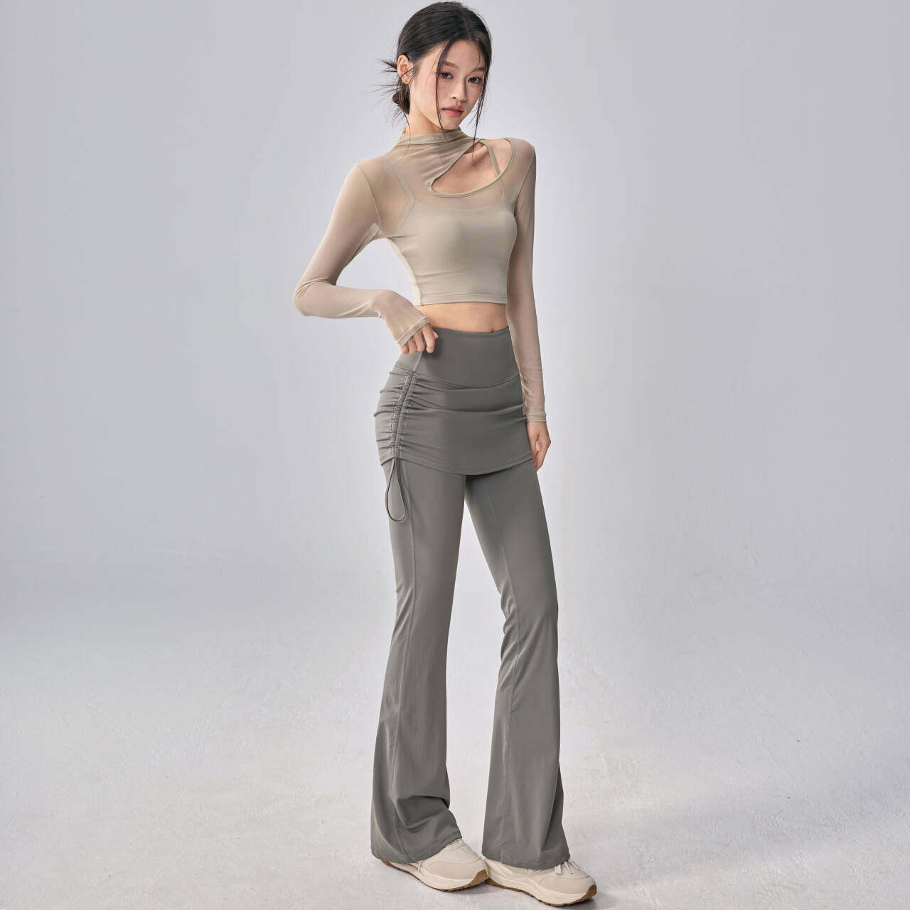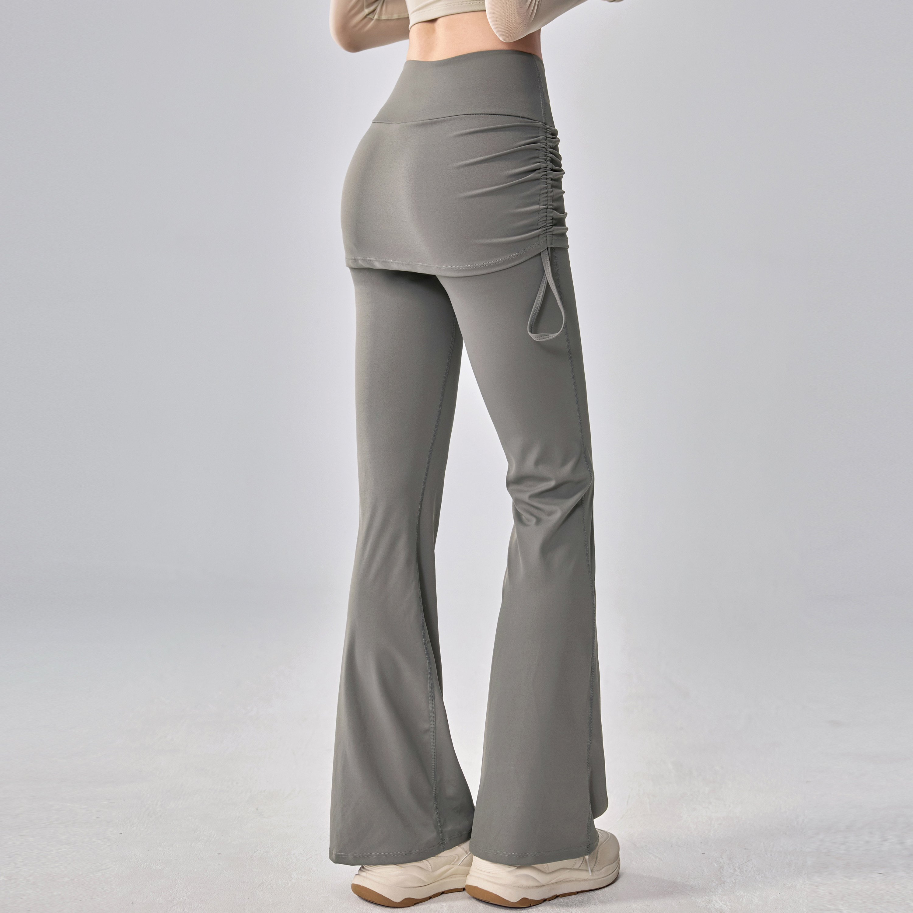 健身女孩微喇瑜伽裤假两件提臀高腰显瘦普拉提训练屁帘运动长裤新