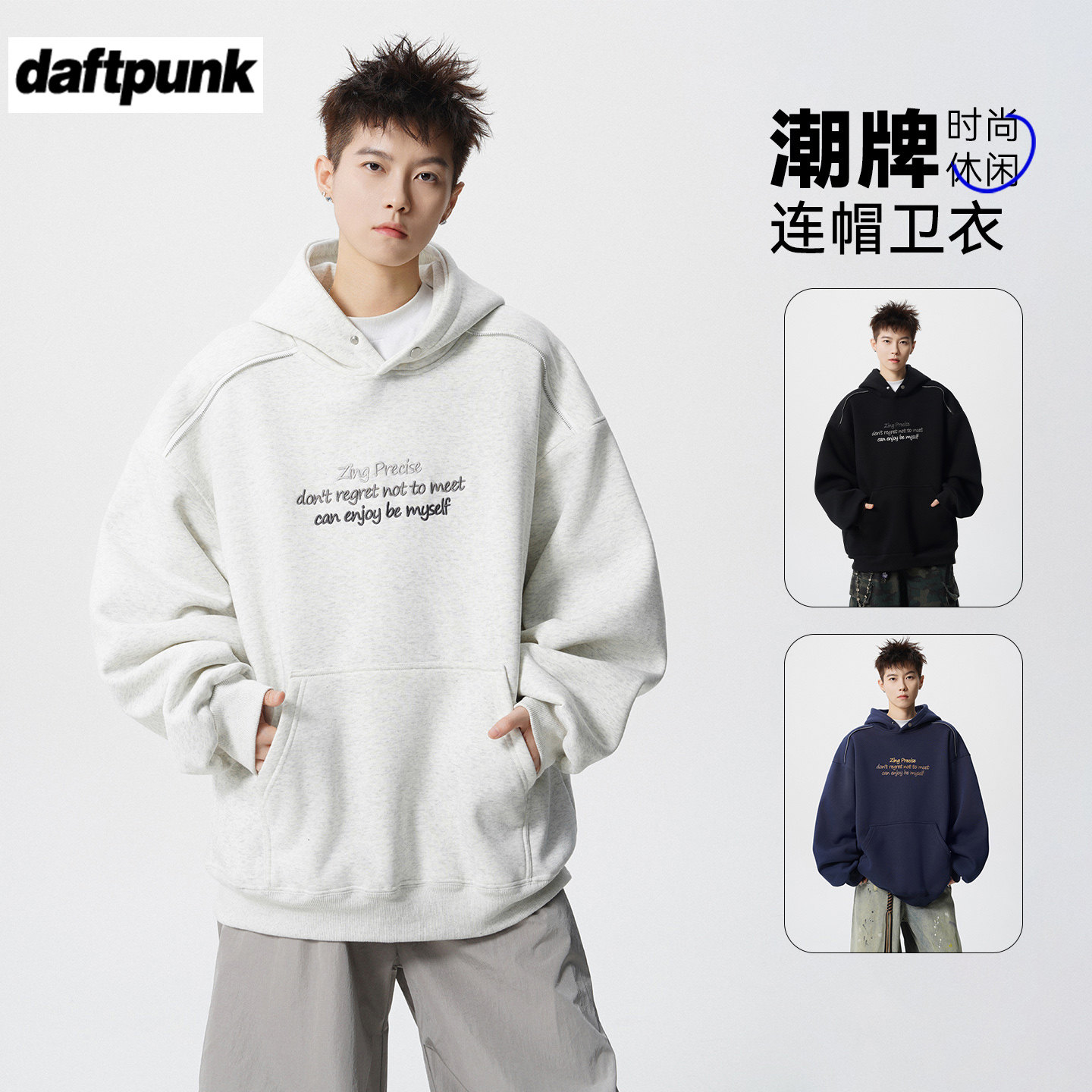 重磅字母刺绣连帽卫衣男女款美式高街情侣外套潮牌休闲运动帽衫