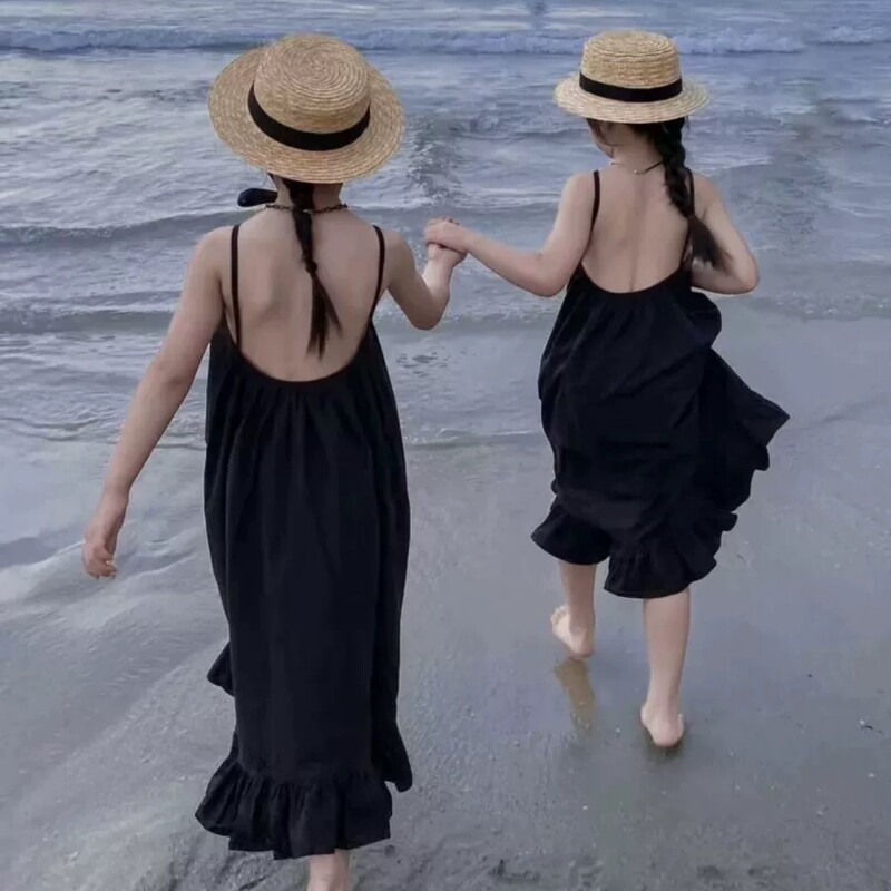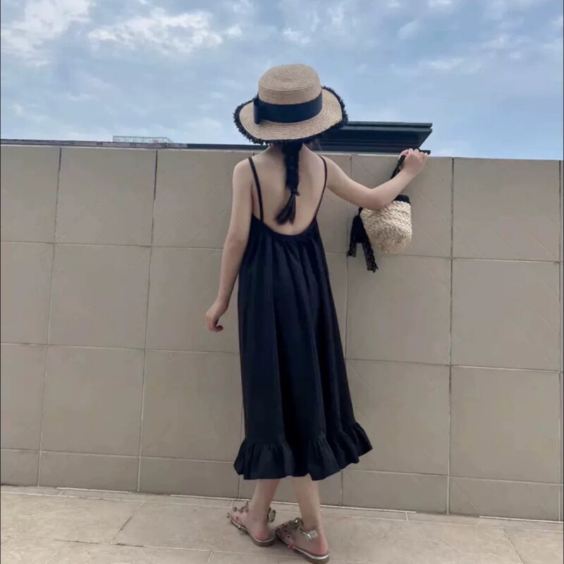 女童高级感露背度假连衣裙2025夏季新款中大童吊带裙海边沙滩裙子