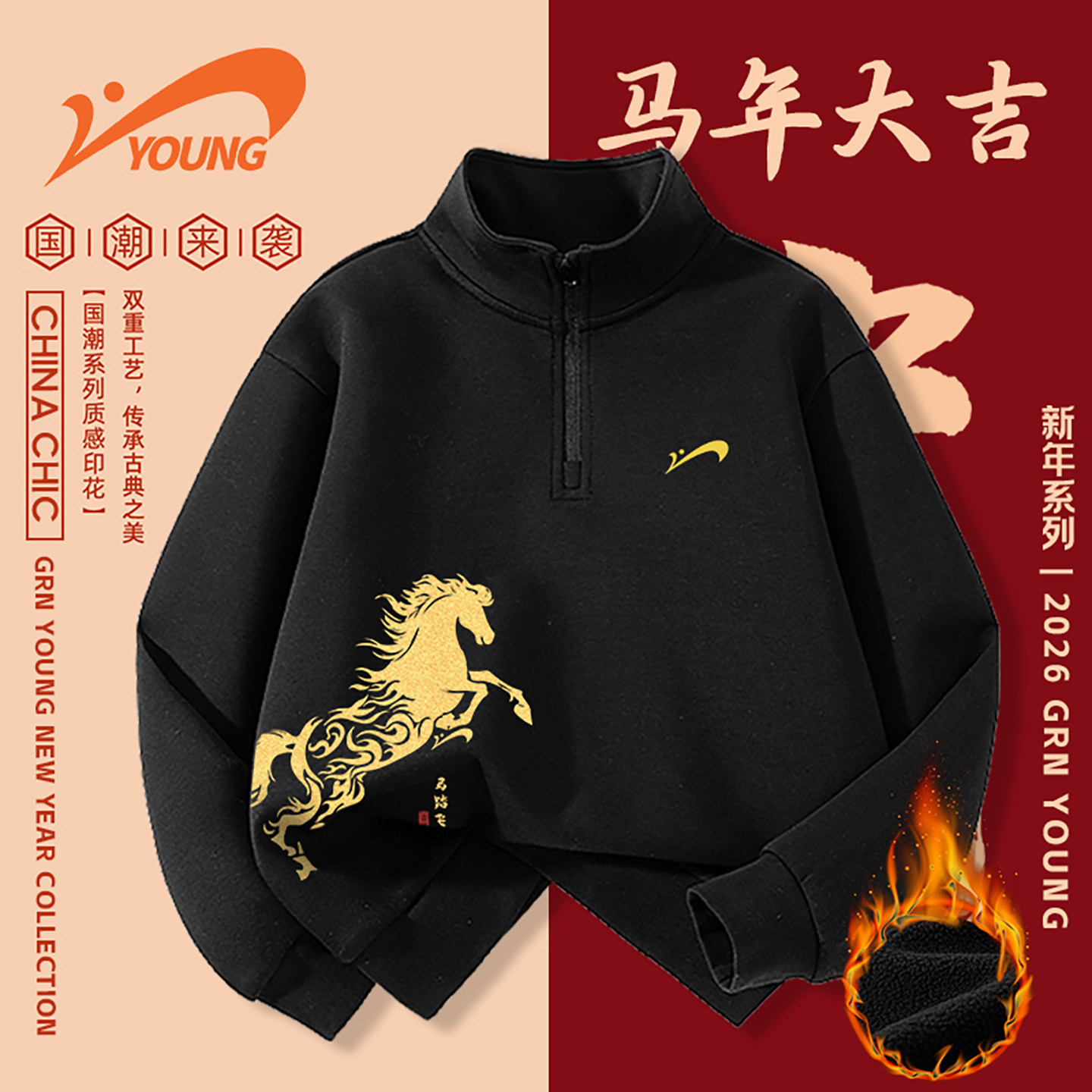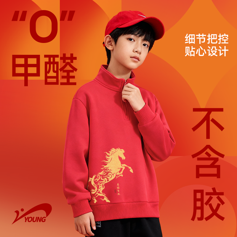 贵人鸟童装男童加绒卫衣秋冬季儿童红色本命年衣服中大童加厚上衣