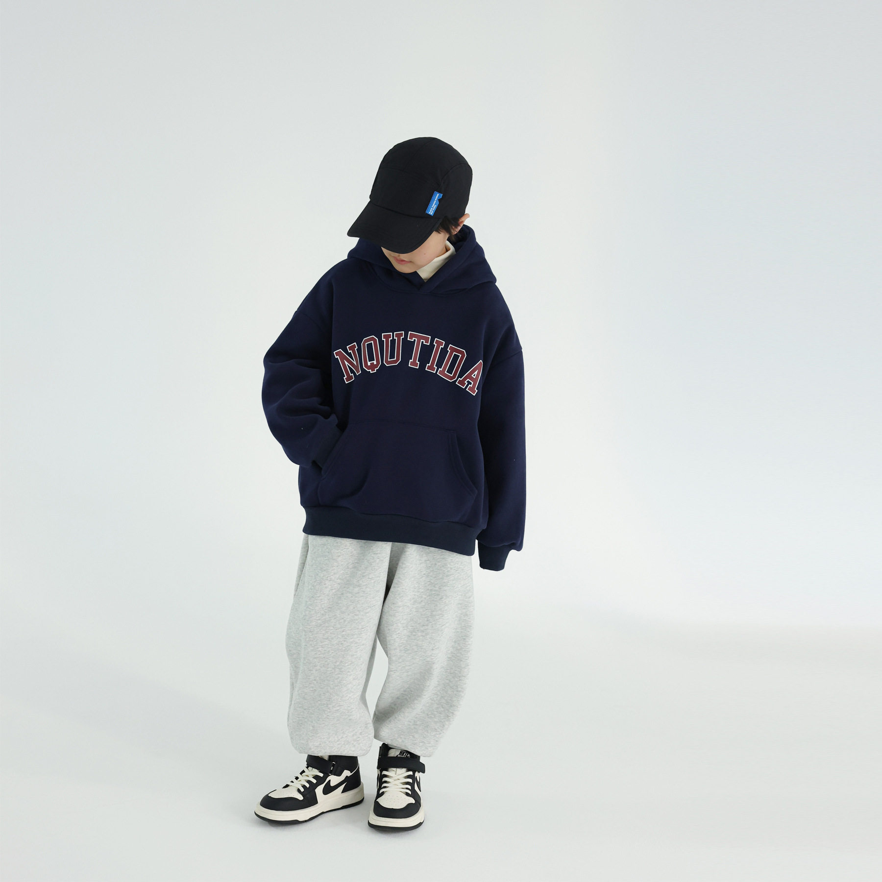 男童加绒卫衣儿童加厚一体绒保暖上衣中大童冬装新年装拜年服红色
