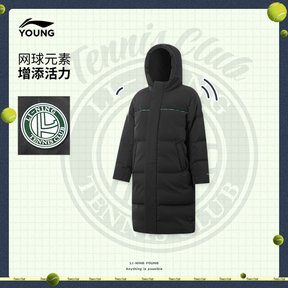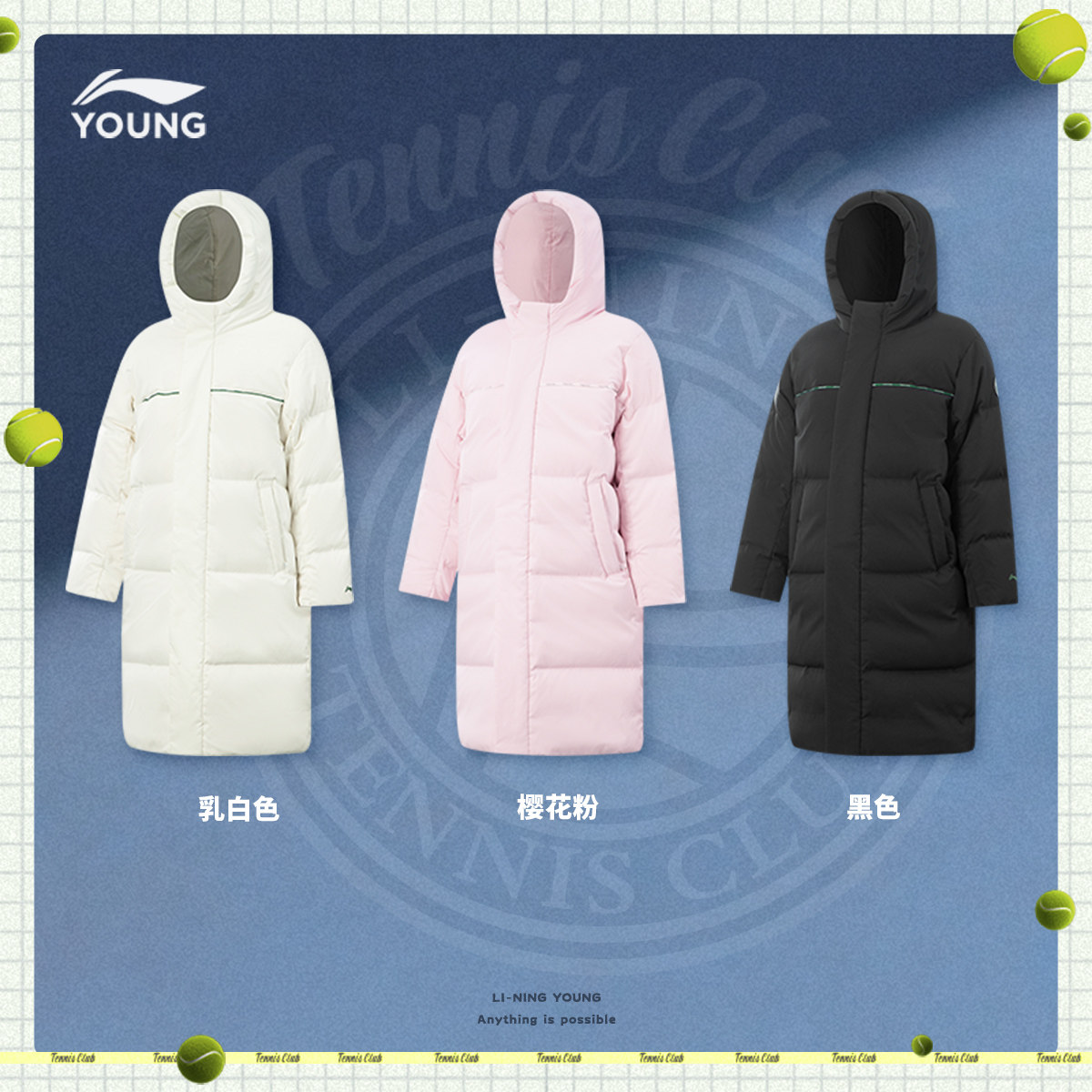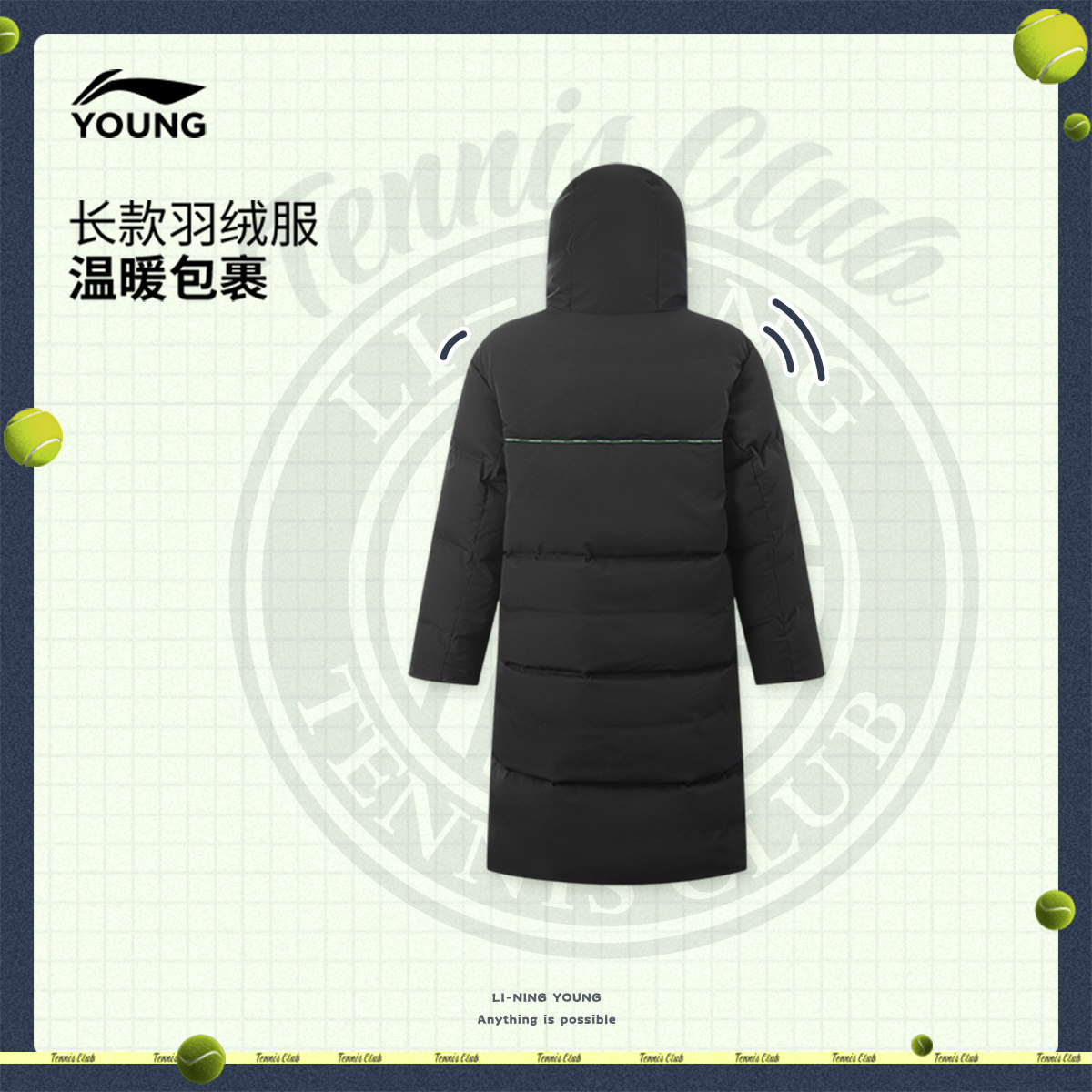 李宁童装长款羽绒服男女大童2025新款网球系列青少年冬季鸭绒童装