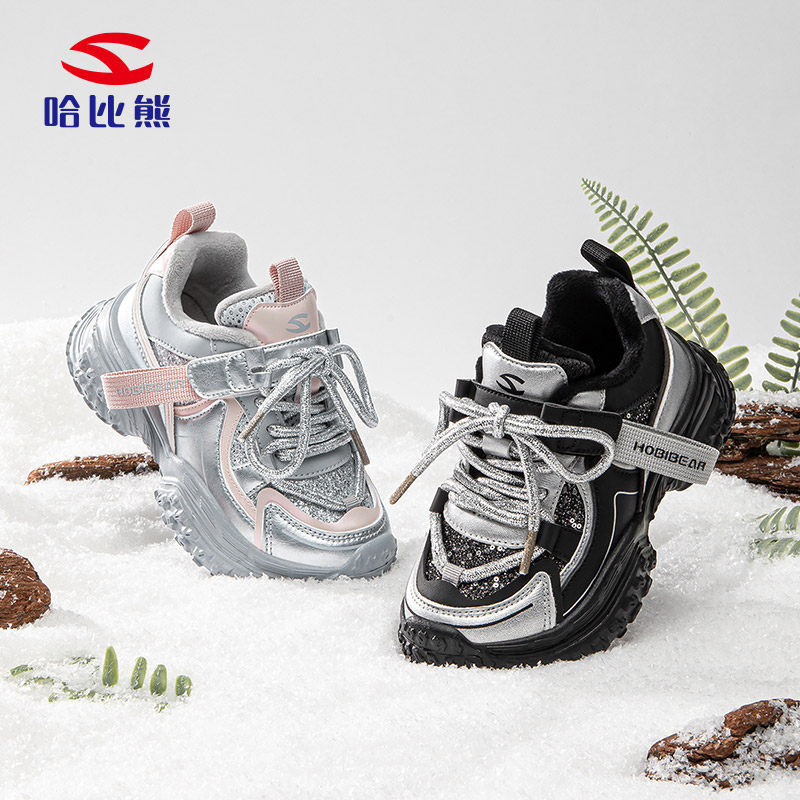 哈比熊童鞋儿童老爹鞋女童2025秋冬季加绒保暖二棉鞋中大童运动鞋