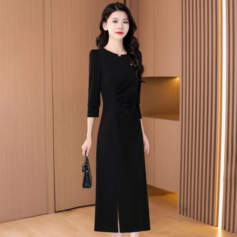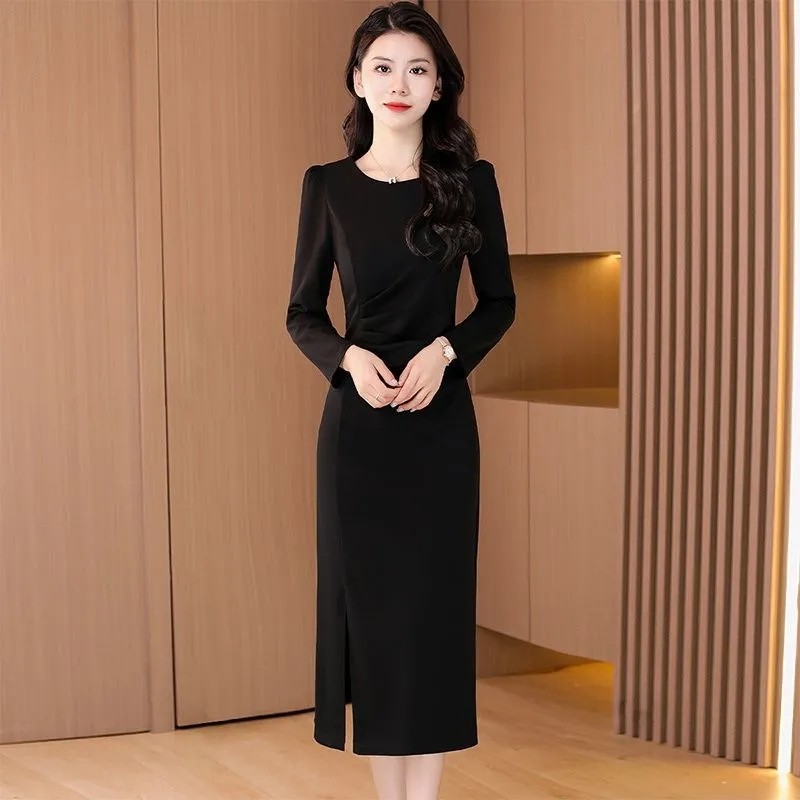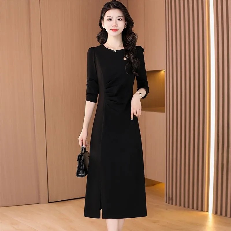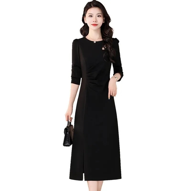 大码女装300斤中长款连衣裙春秋冬2024新款修身收腰镂空打底裙子
