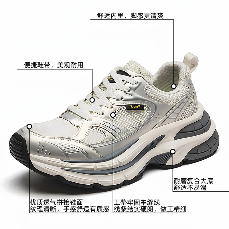 Lee男鞋2026新款今年流行爆款老爹鞋厚底增高休闲鞋春季透网鞋子