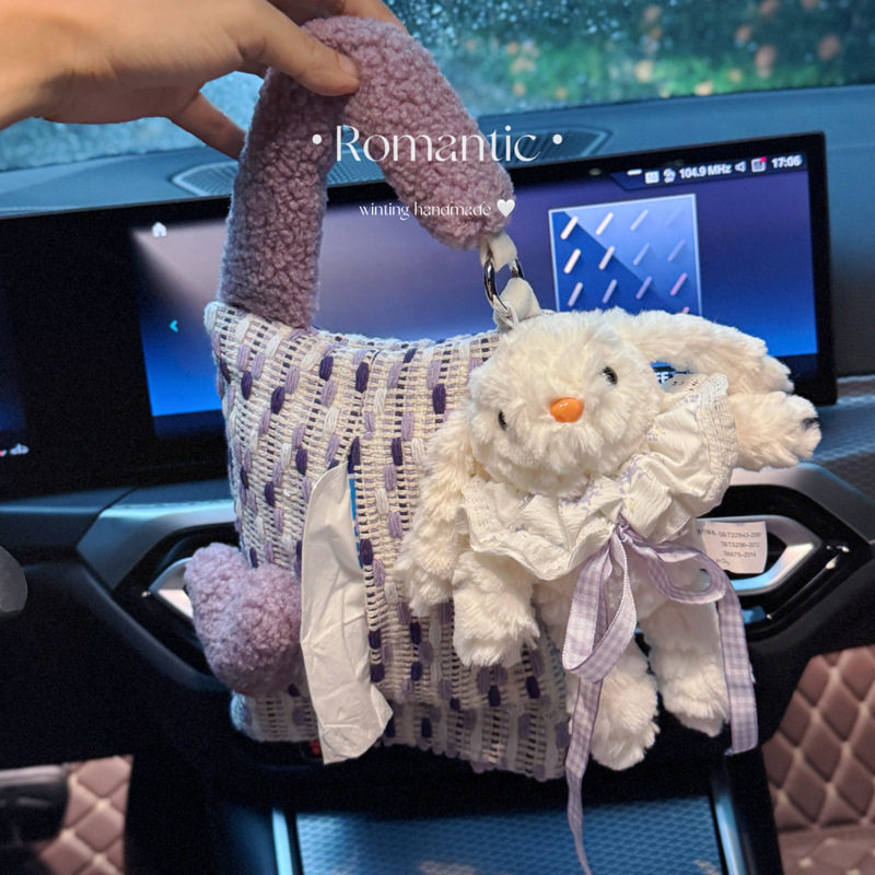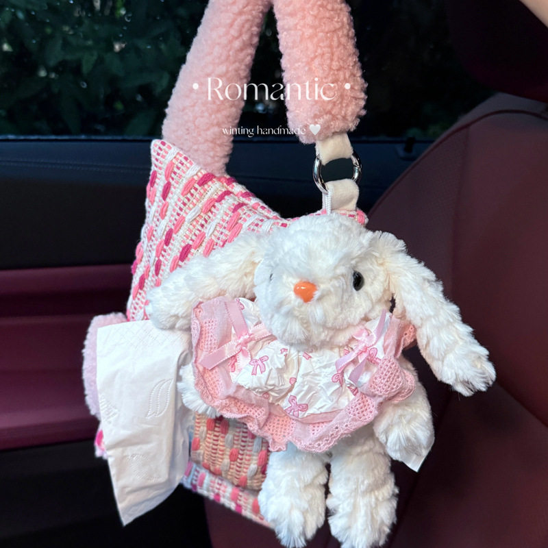 车载纸巾盒2025新款挂式创意可爱高级感抽纸袋垂耳兔网红款收纳包