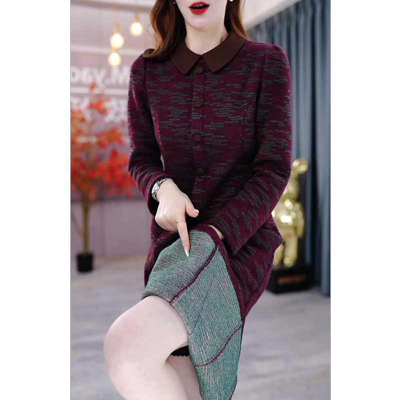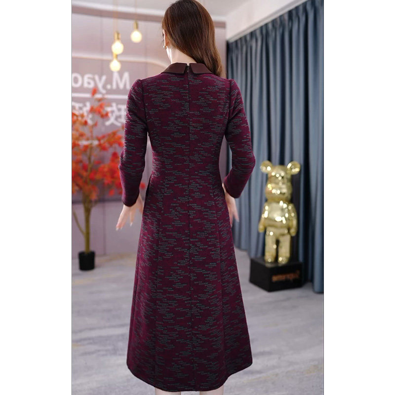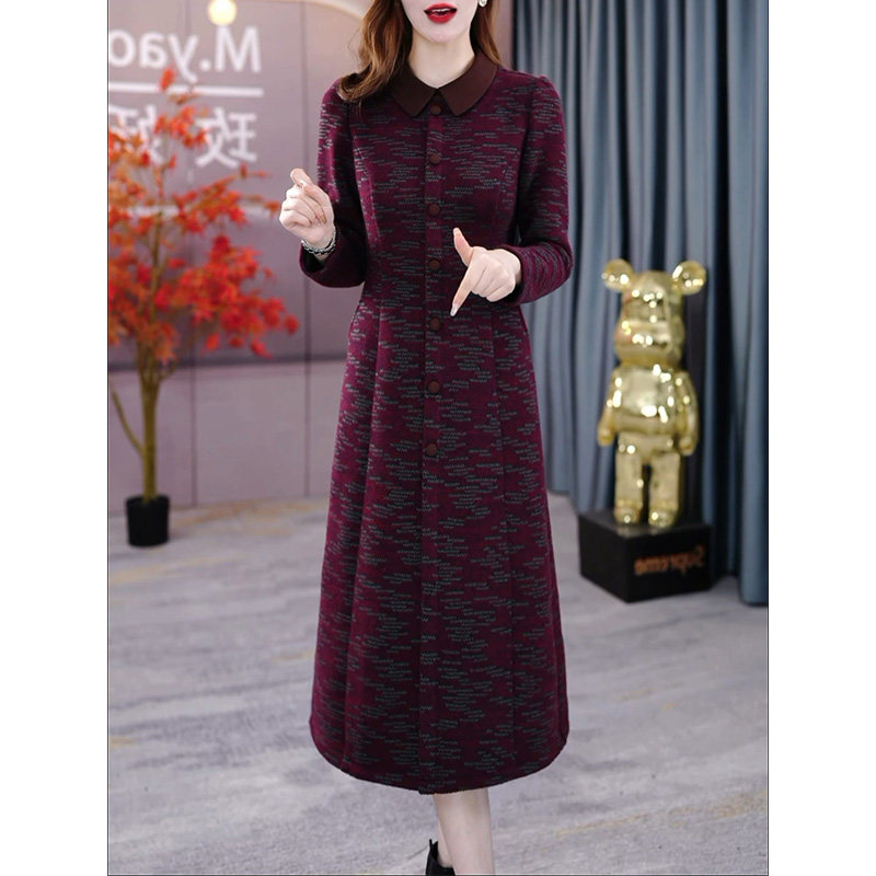 高档碎花长袖连衣裙女2025春秋新款气质配大衣妈妈中长款加厚裙子