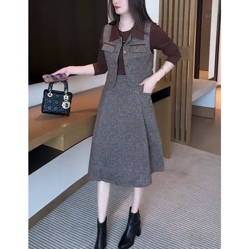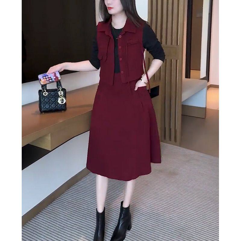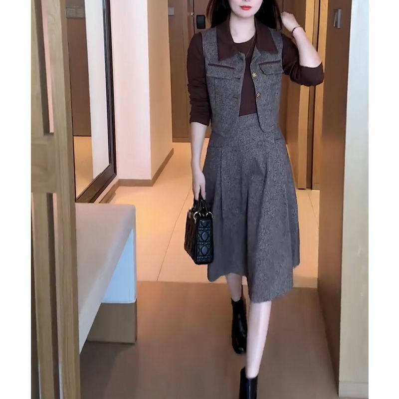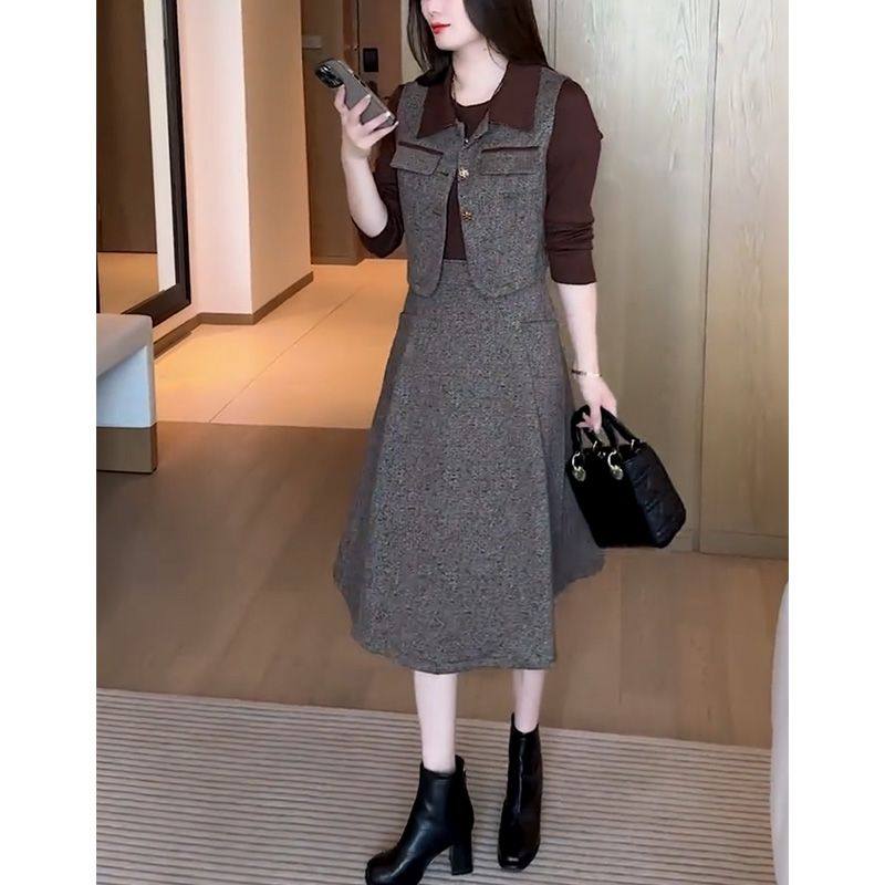 2026年秋季新款马甲外搭长袖连衣裙两件套女时尚减龄气质套装裙子
